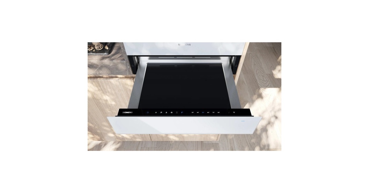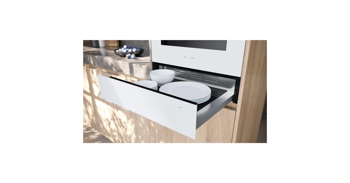 Die Siemens Wärmeschublade BI710C1W1 iQ700 ist eine integrierbare Einbauschublade in Weiß. Sie kann über das SmartHome-System Home Connect bedient werden und eignet sich zum Vorwärmen von Geschirr sowie schonenden Garen von Speisen. Die Schublade bietet ausreichend Platz für bis zu 12 Teller oder 64 Espresso-Tassen und öffnet ohne Griff durch die Push-/Pull-Funktion. Besonders gut passt sie zu einem 45 cm-Kompaktgerät wie Kompaktbackofen, Dampfgarer oder Kaffeevollautomaten. Die hohe Qualität und Funktionalität machen die Wärmeschublade zur idealen Ergänzung für jede Küche.Art.-Nr.: 100036117
