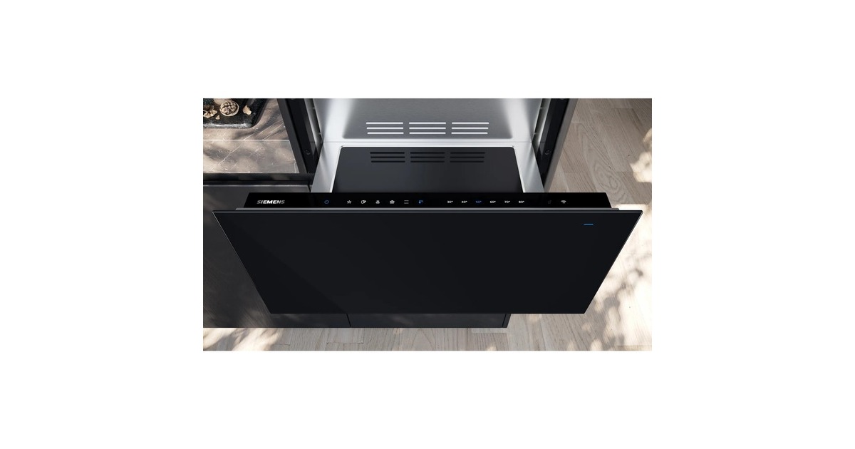 Die Siemens Wärmeschublade BI710D1B1 iQ700 ist die perfekte Ergänzung für Ihre Küche. Mit ihrer SmartHome-Kompatibilität durch Home Connect bietet sie Ihnen ein Höchstmaß an Komfort und Kontrolle. Diese Wärmeschublade eignet sich ideal zum Vorwärmen von Geschirr und zum Sanftgaren Ihrer Speisen. Dank der Touchfelder ist die Bedienung kinderleicht und intuitiv. Die Schublade bietet Platz für bis zu 40 Teller mit einem Durchmesser von 26 cm oder für beeindruckende 192 Espresso-Tassen. Die Öffnung erfolgt ohne Griff, einfach per Push-/Pull-Funktion.Art.-Nr.: 100036116