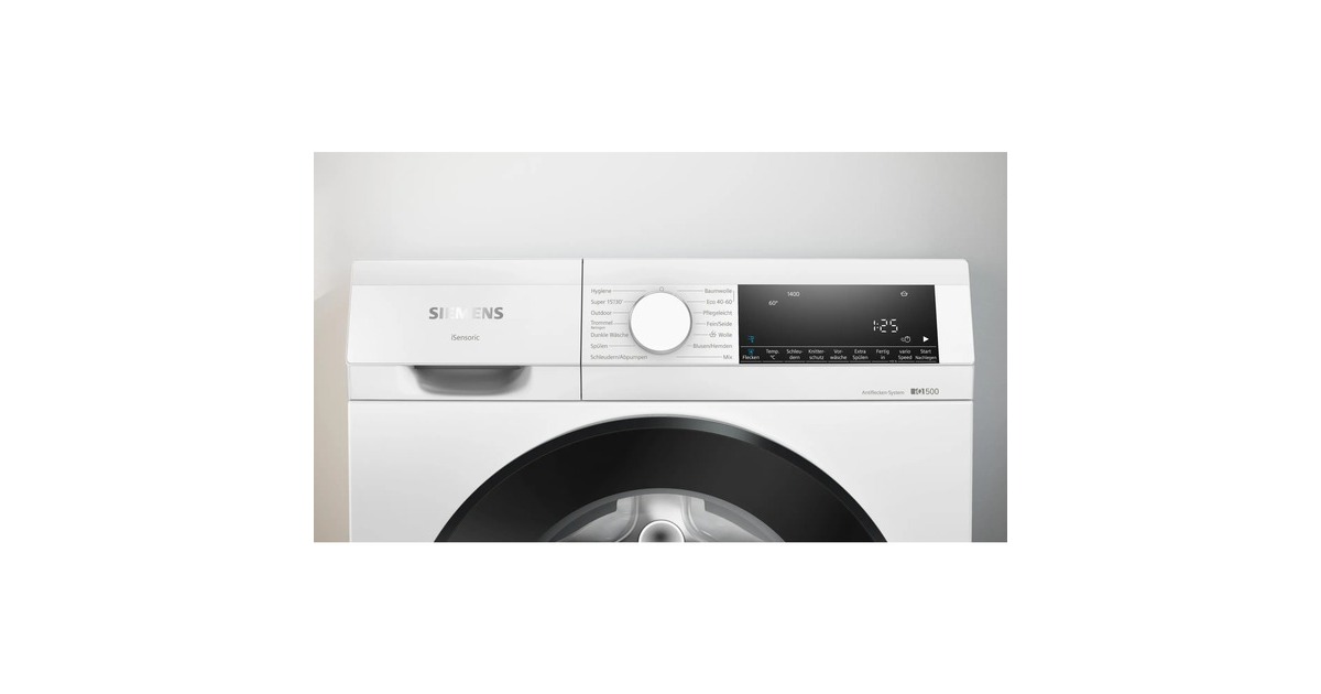 Die Waschmaschine Siemens WG34G2070 iQ500 hat ein Fassungsvermögen von 8 kg und stellt zahlreiche Funktionen und Programme zur Verfügung. Die Bedienung der WG34G2070 gestaltet sich durch die übersichtlichen TouchControl-Tasten und den Programmwähler kinderleicht. Das Outdoor-Programm ermöglicht die schonende Reinigung hochwertiger Outdoor-Bekleidung. Dank varioSpeed-Option lässt sich die Waschdauer um bis zu 65% beschleunigen und mit dem Programm super15 kann man die Wäsche in nur 15 Minuten waschen. Mit der Nachlegefunktion kann man den bereits gestarteten Waschvorgang unterbrechen, um weitere Wäschestücke in die Trommel zu legen. Auch in puncto Sicherheit glänzt die WG34G2070 mit einem aquaStop, einer Kindersicherung, einer Unwuchtkontrolle und einer Schaumerkennung. Der iQdrive-Motor ist langlebig und arbeitet effizient und angenehm leise. Art.-Nr.: 100036264
