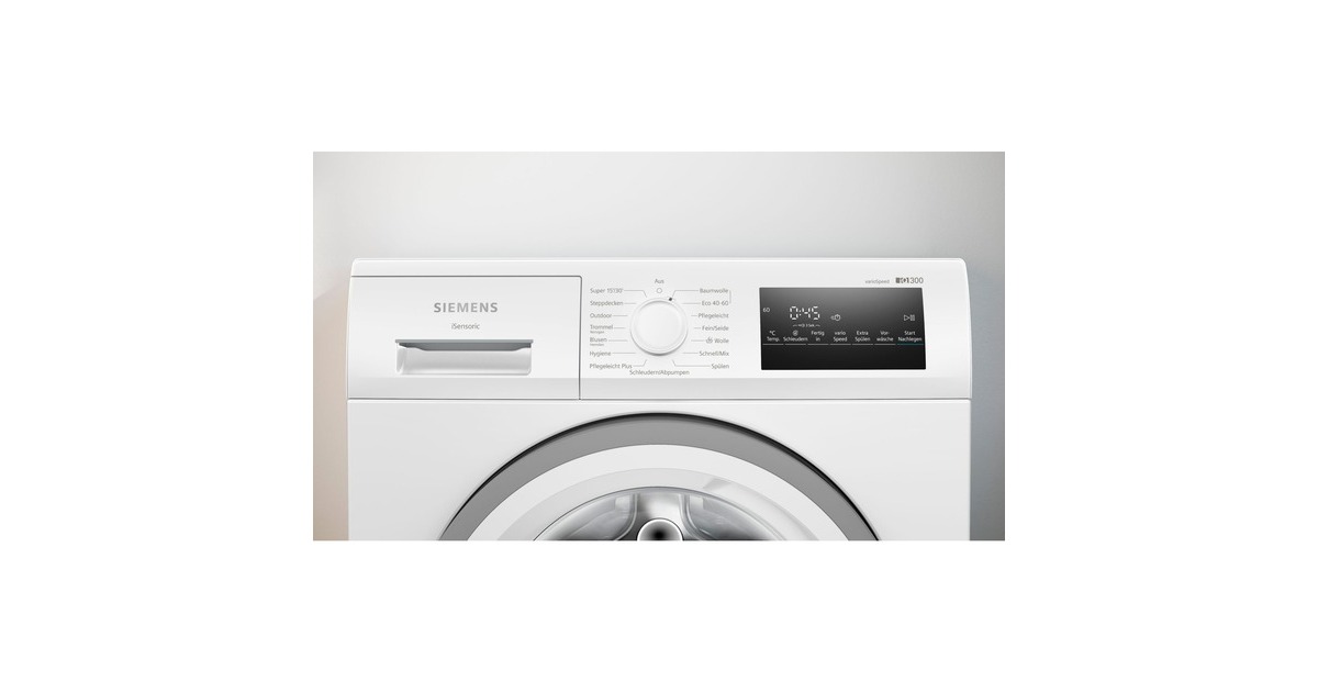 touchControl-Tasten: Vorwäsche, Extraspülen, Fertig in, Temperatur, varioSpeed, Start / Pause mit Nachlegefunktion, Drehzahlabwahl/ohne Schleudern |