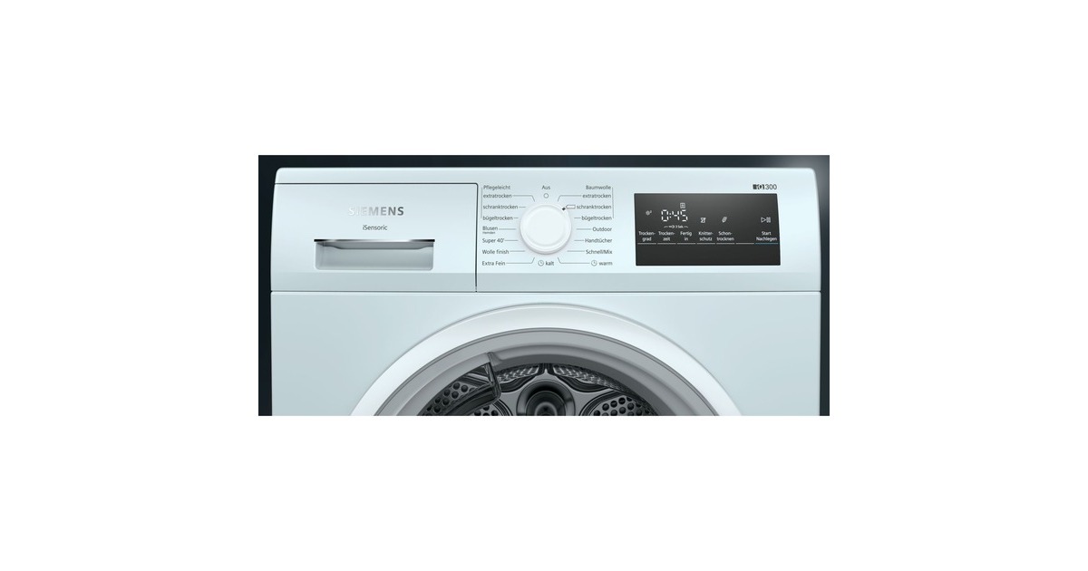 touchControl-Tasten: Schontrocknen, Knitterschutz, Programmdauer, Trocknungsgradfeinjustage, 24 h Fertig in, vollelektronische Einknopf-Bedienung für Feuchtegesteuerte-, Zeit- und Spezialprogramme |