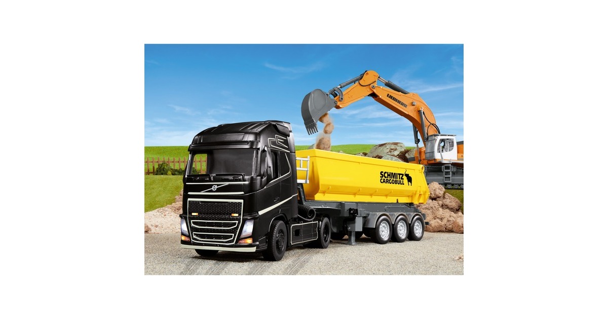 Der SIKU CONTROL32 3-Achs-Kippsattelauflieger ist die ideale Ergänzung zum SIKU CONTROL32 Volvo FH16 4x2 mit Bluetooth-Steuerung. Gemeinsam sind diese die Baustellen-Profis mit großem Ladevolumen. Mit dem Original werden bis zu 30 Tonnen Asphalt, Betonbruch, Kies oder Sand transportiert. Im Maßstab 1:32 lässt sich die Mulde kippen, dabei öffnet sich automatisch die Heckklappe. Wird der Auflieger abgekoppelt, lassen sich die Stützfüße mechanisch herunterkurbeln.Art.-Nr.: 1618197