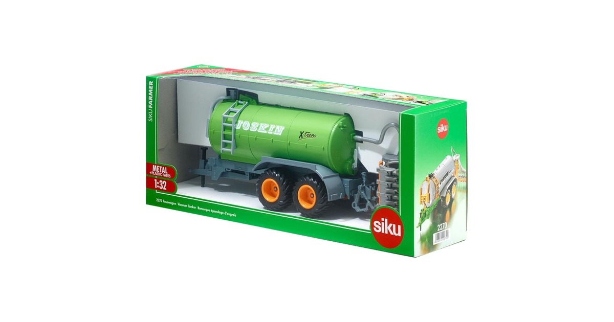 Originalgetreue Umsetzung eines Joskin-Güllefass-Fasswagen in auffällig grüner Farbgebung. Zur Ausstattung des 3-achsigen Fasswagens gehören ein beweglicher Kran, ein zu öffnender Deckel sowie ein Wechsellader-Fahrgestell mit Stützen.Art.-Nr.: 1187557