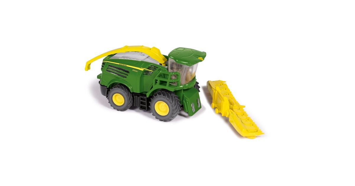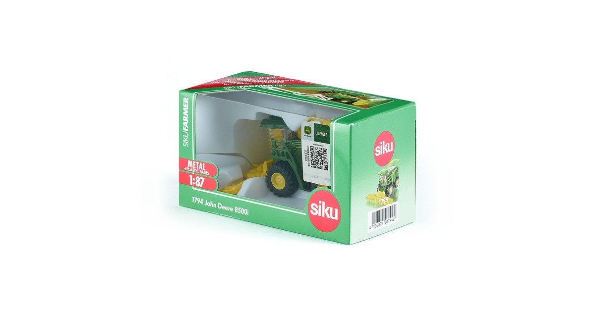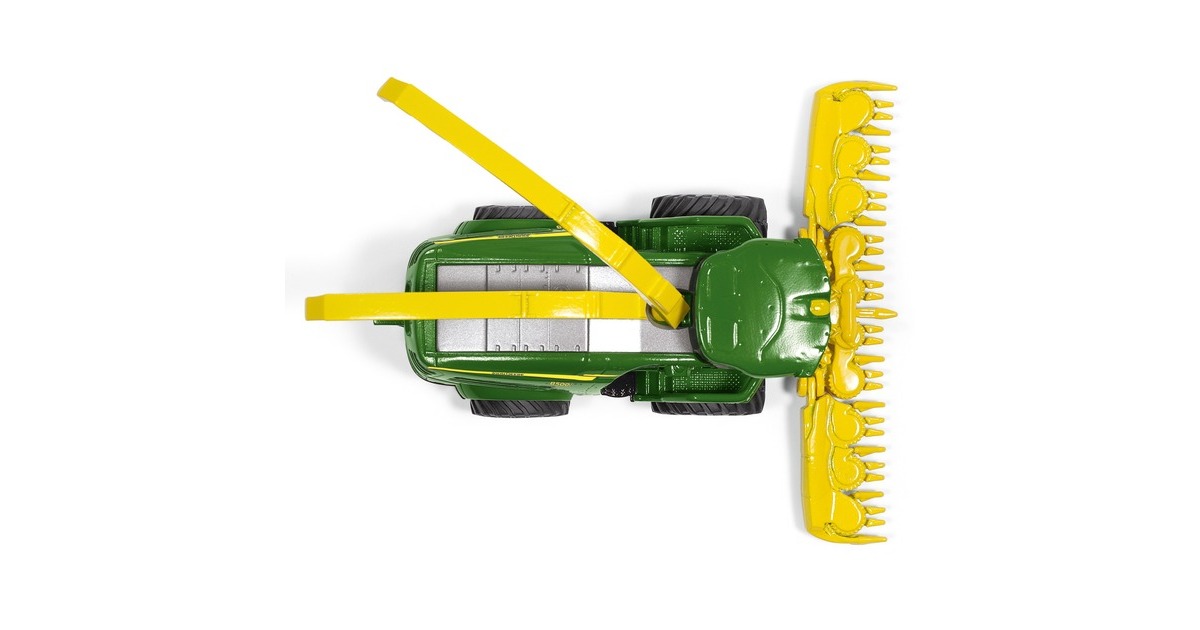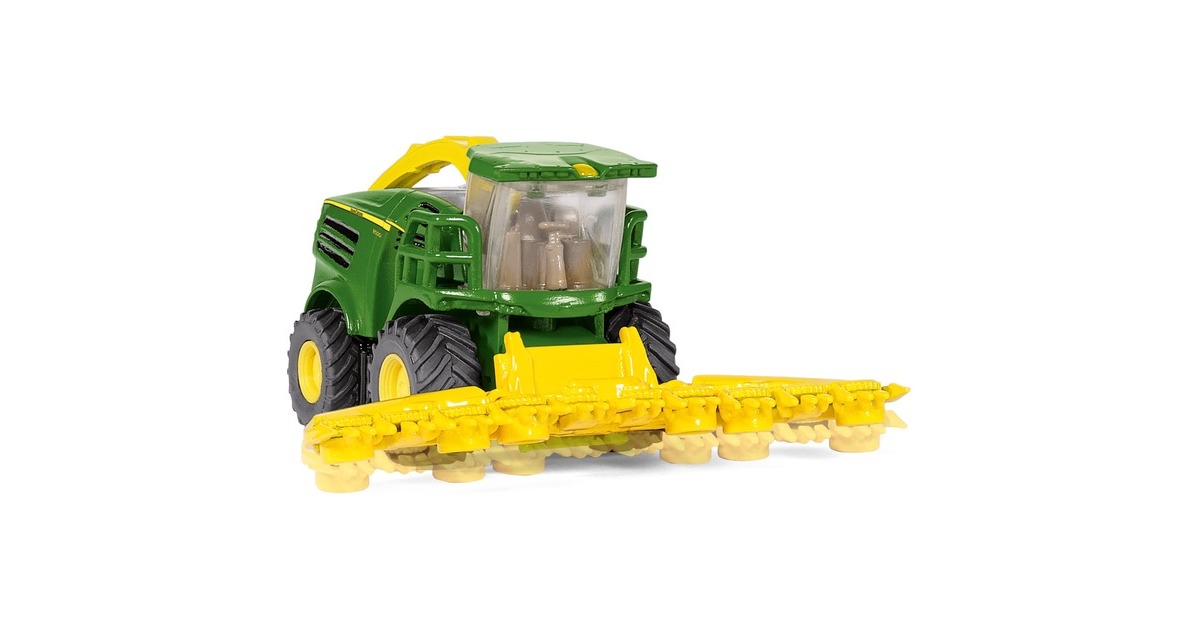 Meter um Meter frisst sich der imposante John Deere 8500i Maishäcksler durch das Maisfeld. SIKU setzt das neue Modell der 8000er-Serie präzise im Maßstab 1:87 aus hochwertigem Metall und Kunststoff in Szene. Die großen, wuchtigen und gummierten Räder mit dem groben Stollenprofil bahnen sich auch bei widrigen Bodenverhältnissen ihren Weg. Die Details begeistern die Spielzeug-Landwirte. Das Maisgebiss lässt sich abnehmen und für den Transport zum nächsten Maisfeld klappen. Das sogenannte Abtankrohr, mit dem der gehäckselte Mais auf die bereitstehenden landwirtschaftlichen Anhänger von SIKU geladen wird, kann bewegt werden.Art.-Nr.: 1501152