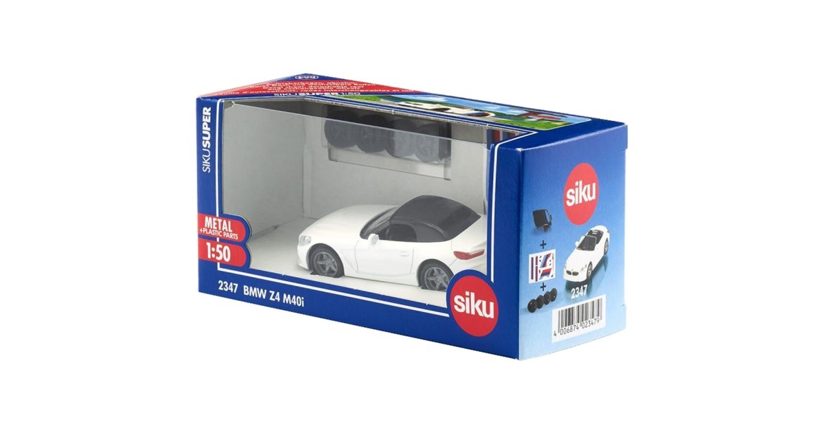 Dynamisches Cabrio in wandelbarem Outfit - Offen, flach und auf Dynamic getrimmt – vor allem in der Variante BMW Z4 M40i. Der 3-Liter-Sechzylinder-Motor mobilisiert bis zu 340 PS. siku liefert das dynamische Cabrio in Weiß aus. Mit dem serienmäßigen Design- und Tuningkit lässt sich der BMW Z4 individuell im M-Design bekleben Räder mit schwarzen Felgen ausstatten.Art.-Nr.: 1729859