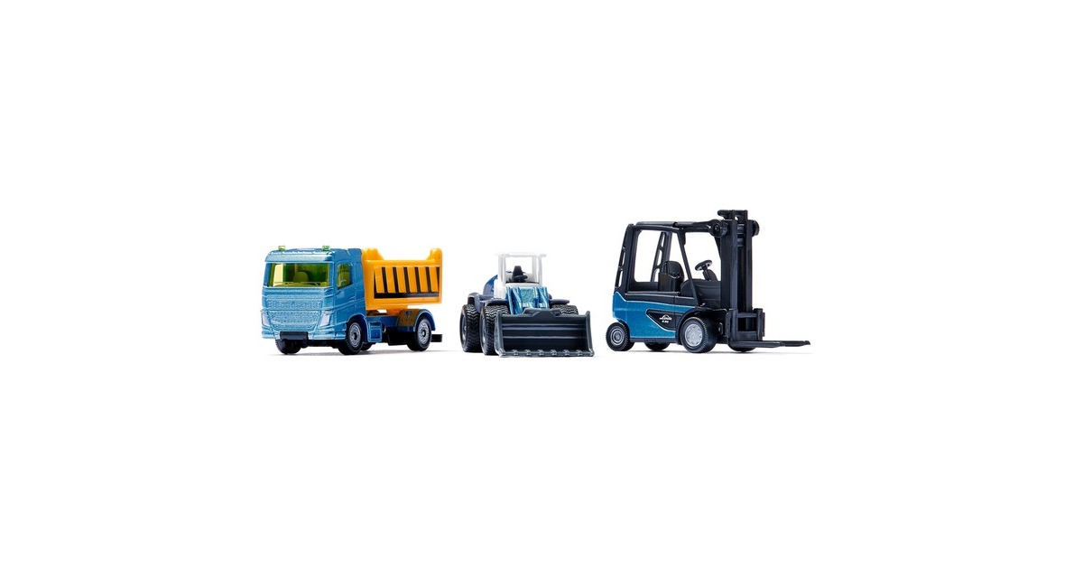 Eine Baustelle ist faszinierend: Kraft und Präzision der oft tonnenschweren Baumaschinen, Fahrzeuge und Kraftkolosse beeindrucken kleine wie große Zuschauer gleichermaßen. Für ein realistisches Spielerlebnis sorgt das SIKU Geschenkset Baustelle mit drei der wichtigsten Fahrzeuge auf der Baustelle: Der schwere LKW mit der großen Mulde für den An- und Abtransport von Baumaterial und Zubehör, der Gabelstapler mit seinen starken Zinkenarmen und schließlich der Radlader, eine kräftige Baumaschine mit großer Schaufel.Art.-Nr.: 1902878
