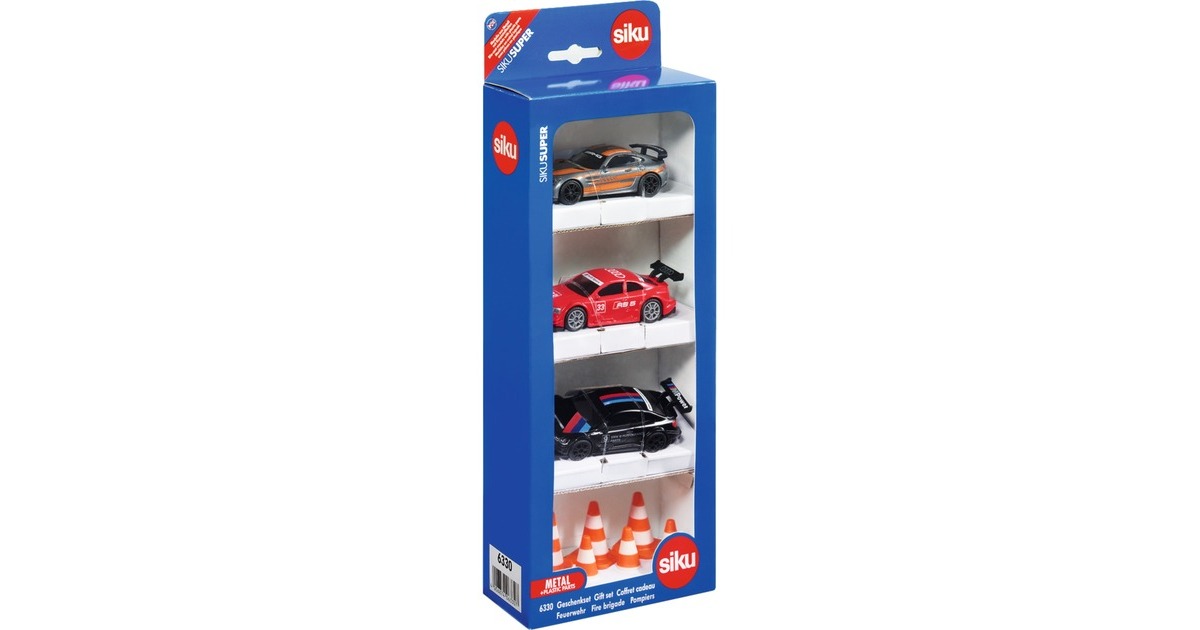 Rennwagenfans aufgepasst: Mit diesem Set aus der Serie SUPER kommen nicht nur drei Rennwagen verschiedener Marken, sondern auch Zubehör für einen spannenden Rennverlauf. Mit den sechs im Set enthaltenen Pylonen kann ein herausfordernder Parcours aufgebaut werden, den die mit tiefliegenden Karosserien und Spoilern ausgestatteten Rennwagen bewältigen müssen. Art.-Nr.: 1902875