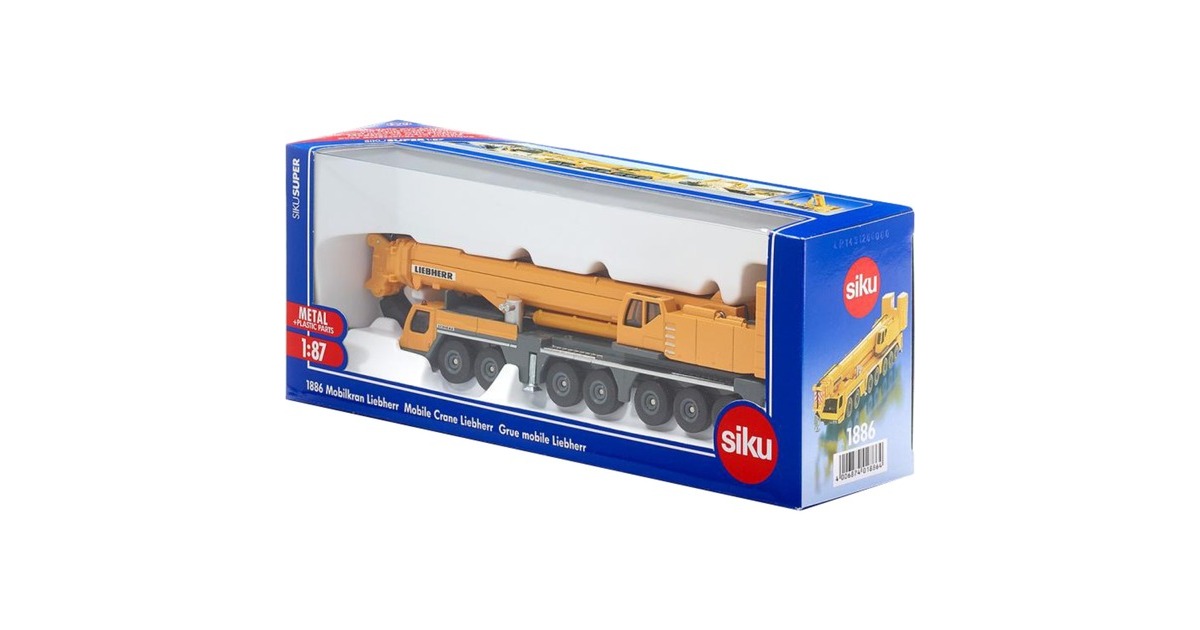 Ein Highlight der 1:87 Baustellenmodelle ist der neue Mobilkran der Marke Liebherr. Das fast ausschließlich aus Metall gefertigte Modell rollt auf einem 7-achs-Fahrwerk mit Reifen aus gummiertem Material. Das Maschinenhaus ist um 360° drehbar. Der Kranarm kann gehoben und gesenkt werden und ist einfach teleskopierbar. Die 4 Stützen sind aus Metall und werden bei Bedarf ausgefahrenArt.-Nr.: 1187548