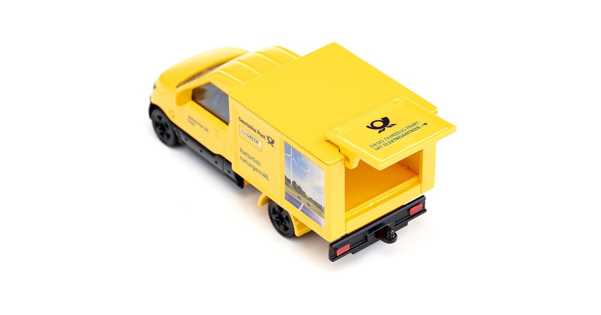 Dieser kleine Lieferwagen im typischen Gelb der Post und mit Kastenaufbau hat Türen zum Öffnen und eine Heckklappe, die sich nach oben öffnen lässt. Hinzu kommt eine Anhängerkupplung, so dass er mit kompatiblen Hängern aus der Serie SUPER kombiniert werden kann. Mit im Lieferumfang sind außerdem einige Koffer zur Auslieferung.Art.-Nr.: 1902881