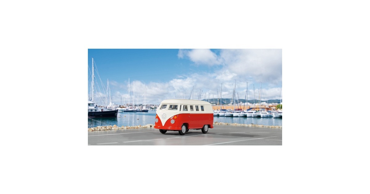 Der T1 von Volkswagen ist mehr als einfach nur ein Fahrzeug - er ist eine echte Legende. Bereits in den 1950er Jahren begann die Erfolgsgeschichte des deutschen Kleinbusses, der von seinen Fans liebevoll „Bulli“ genannt wird. Er galt als ein Symbol des deutschen Wirtschaftswunders, in den USA war das Modell dann später unter den Hippies Kult. Durch sein rundliches Design mit glänzendem Lack und verchromten Stoßstangen spricht er mit seinem ausgeprägten Vintage-Charakter noch heute eine große Fangemeinde an. Als Modell gibt es den Kultbus im Maßstab 1:50 in der unverwechselbaren weiß-roten Farb-Kombination mit originalgetreuen Rädern. Karosserie und Türen sind aus Metall, der Aufbau ist aus Kunststoff. An der rechten Fahrzeugseite lassen sich zwei Türen öffnen. Durch seine Anhängerkupplung kann der T1 mit vielen Anhängern kombiniert werden.Art.-Nr.: 1902883