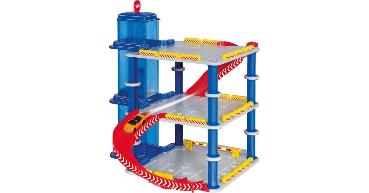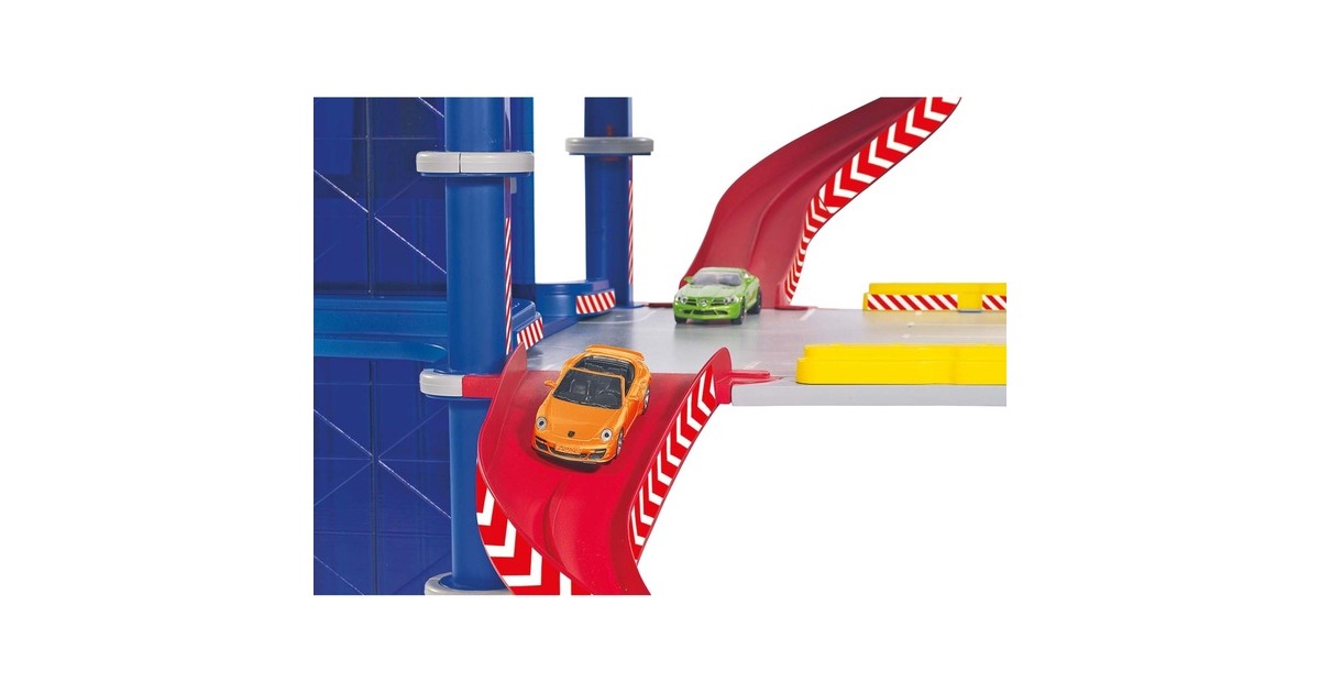 Farbenfrohes Parken auf 3 Etagen: Die SIKUWORLD wächst in die Höhe. Das sich mit drei Ebenen hoch über die SIKUWORLD ausbreitende Parkhaus setzt einen kindgerecht farbenfrohen Akzent in die SIKU Spielwelt im Kinderzimmer. Es lässt sich problemlos sowohl in die SIKUWORLD integrieren als auch als alleinstehendes Parkhaus bespielen. Das im Set enthaltene orangefarbene Porsche Cabrio gleitet mit dem Fahrstuhl nach oben um eine der geräumigen und durchnummerierten Parkboxen zu nutzen. Die Abfahrt gestaltet sich rasant, denn das Fahrzeug fährt vom obersten Stockwerk bis hinunter zu den Ausfahrtschranken ohne Zwischenstopp. Die in die Abfahrten integrierte einzigartige SIKU-Slide-Line ermöglicht den hochwertigen SIKU-Fahrzeugen mit Gummirädern eine schwungvolle Abfahrt. Durch die Integration in das SIKUWORLD-Bausystem ist das Parkhaus jederzeit erweiterbar. Einfache und robuste Steckverbindungen ermöglichen jederzeit den schnellen Auf- und Abbau.Art.-Nr.: 1254609