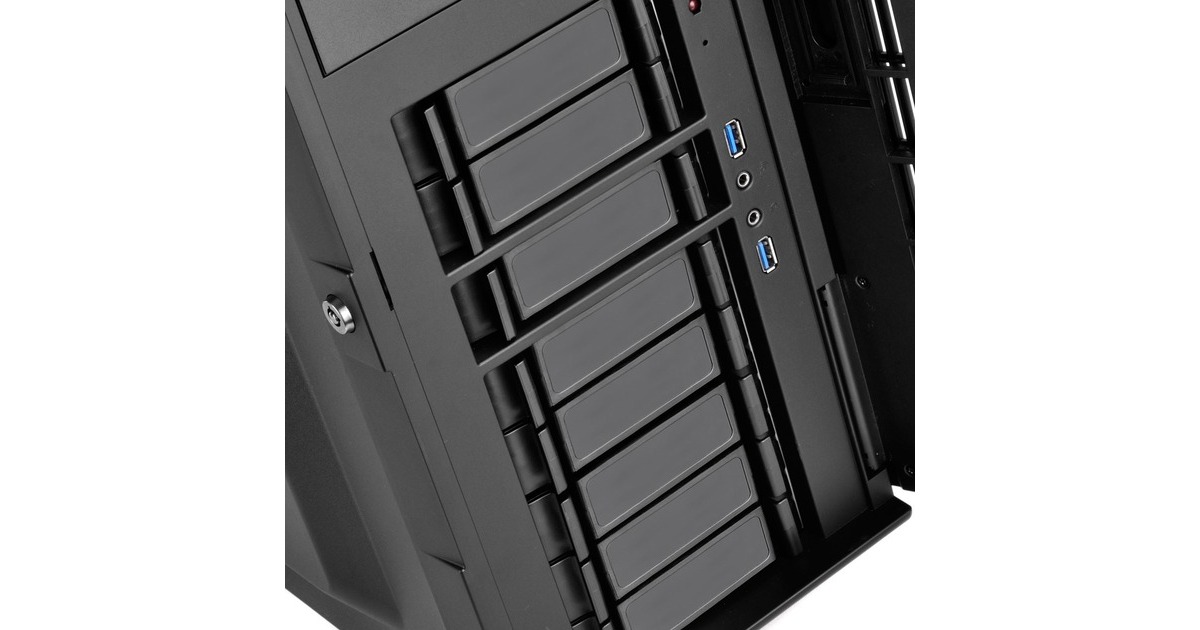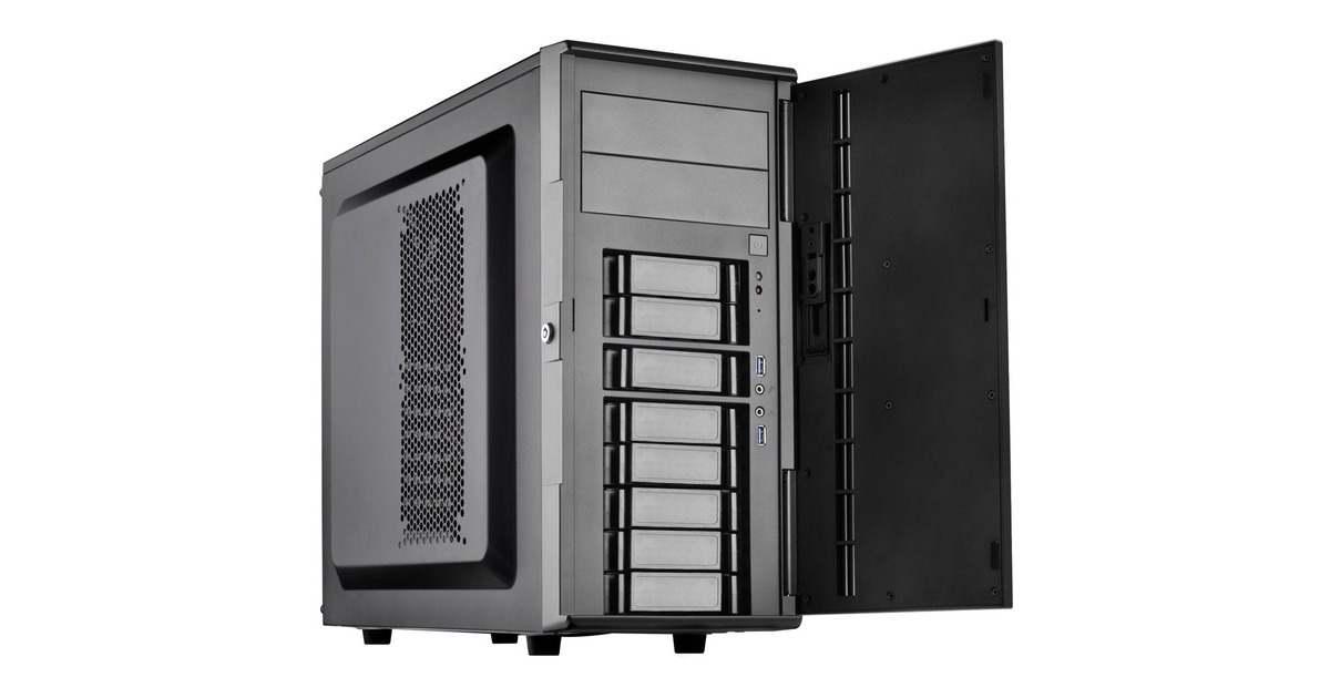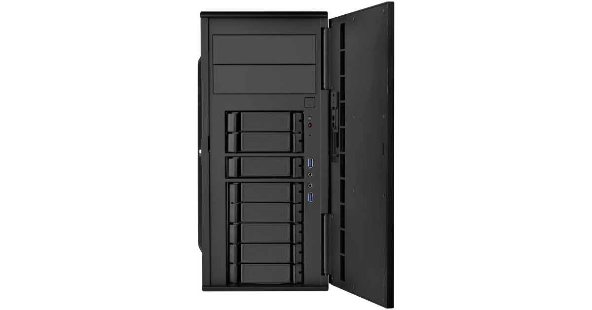 Das CS380 ist ein kompaktes Mid-Tower-Gehäusedesign mit platzsparender Stellfläche. Das Gehäuse unterstützt acht Hot-Swapping-fähige 3,5-oder 2,5-Zoll-SAS/SATA-Laufwerke mit integrierter Backplane. Das Design im klassischen SilverStone-Stil beinhaltet zwei flexible 5,25-Zoll-Laufwerkschächte für mehr Speicheroptionen. Die abschließbare Frontklappe und Ein-/Austastensperre und die drei 120-mm-Lüfter mit gefilterten Einlässen ergänzen die Ausstattung des CS380. Art.-Nr.: 1566296