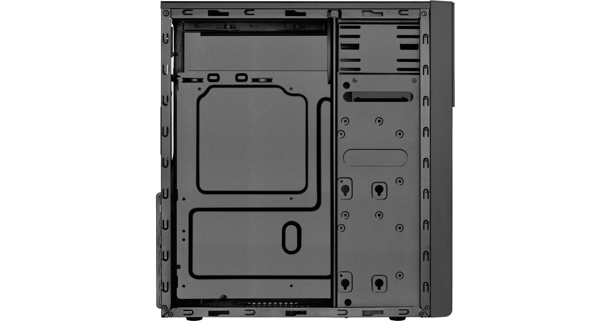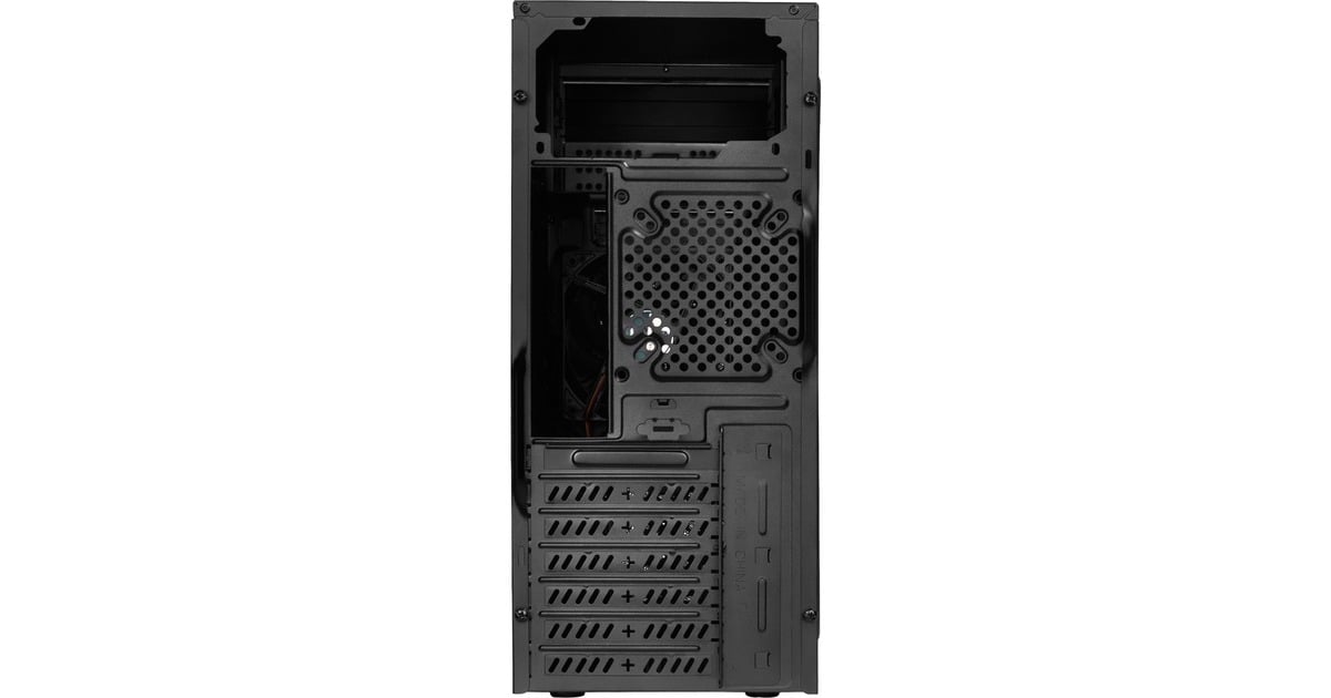 zwei 120-mm-Lüfter am Seitenteil einbaubar, ein 120-mm-Lüfter am Gehäuseboden einbaubar; schnell zugängliche Staubfilter zum einfachen Reinigen; Öffnung der Motherboard-Rückplatte hinter dem CPU-Bereich zur schnellen Kühlermontage; stilvolles Aussehen durch komplett schwarz lackiertes Interieur |