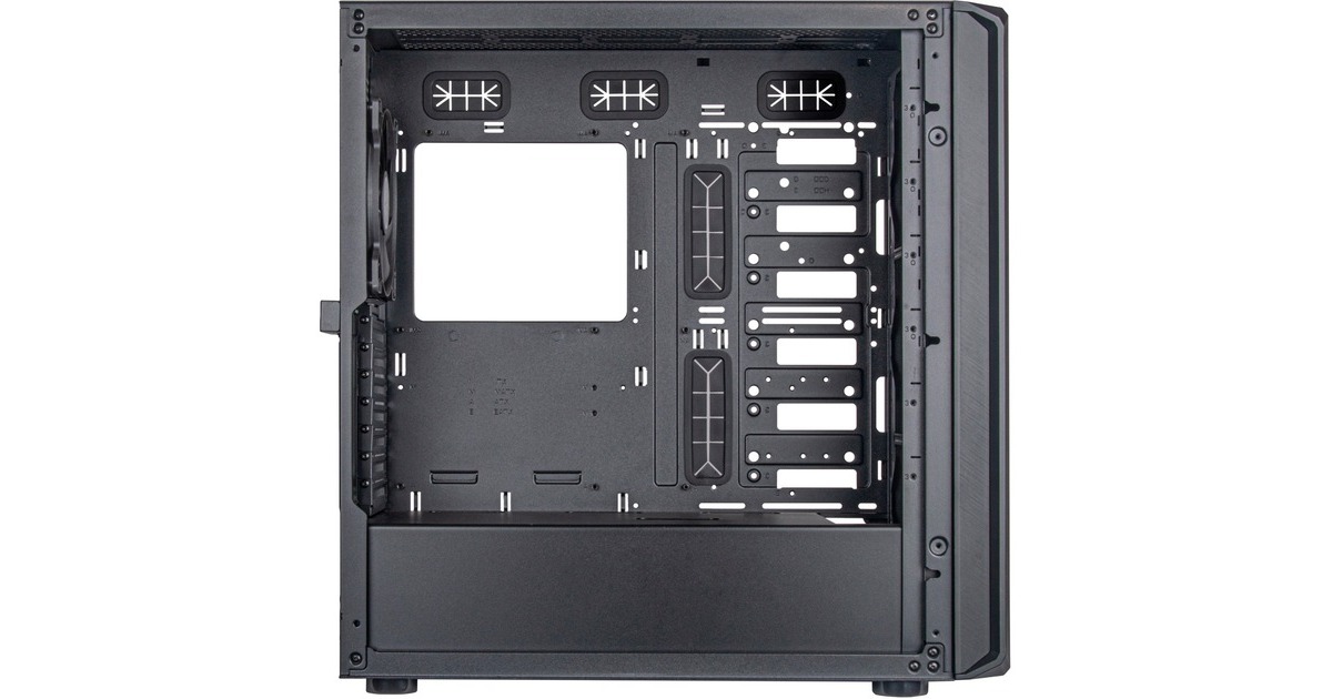 2x schwarze 140-mm-Lüfter vorhanden, ein weiterer 140-mm-Lüfter einbaubar, alternativ 3x 120-mm-Lüfter einbaubar |
