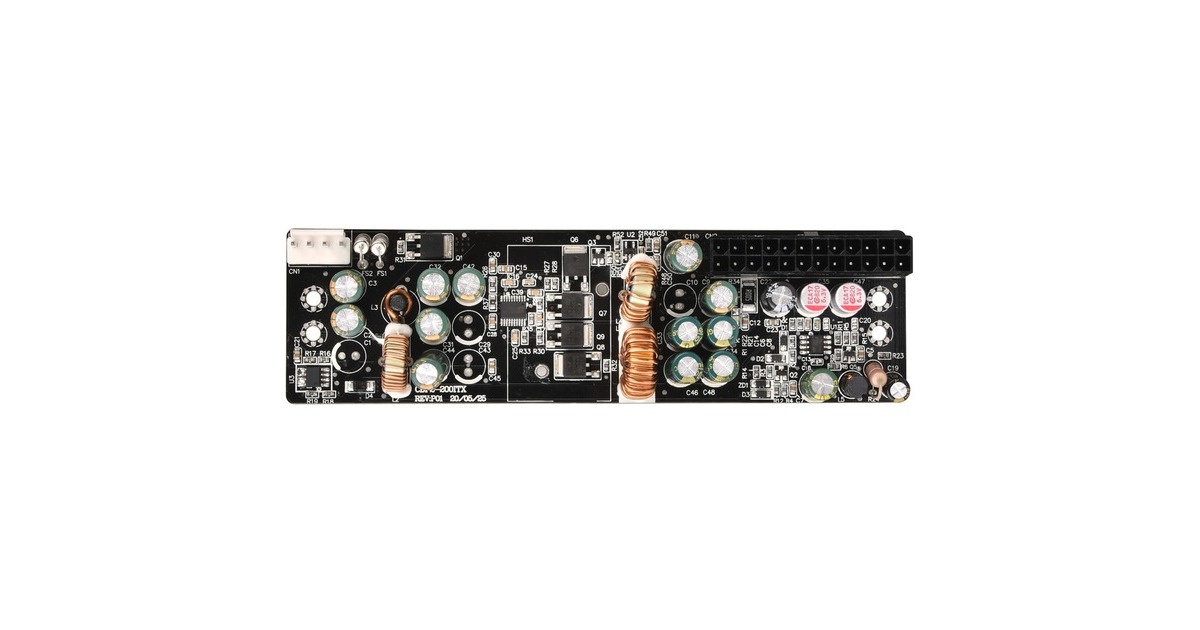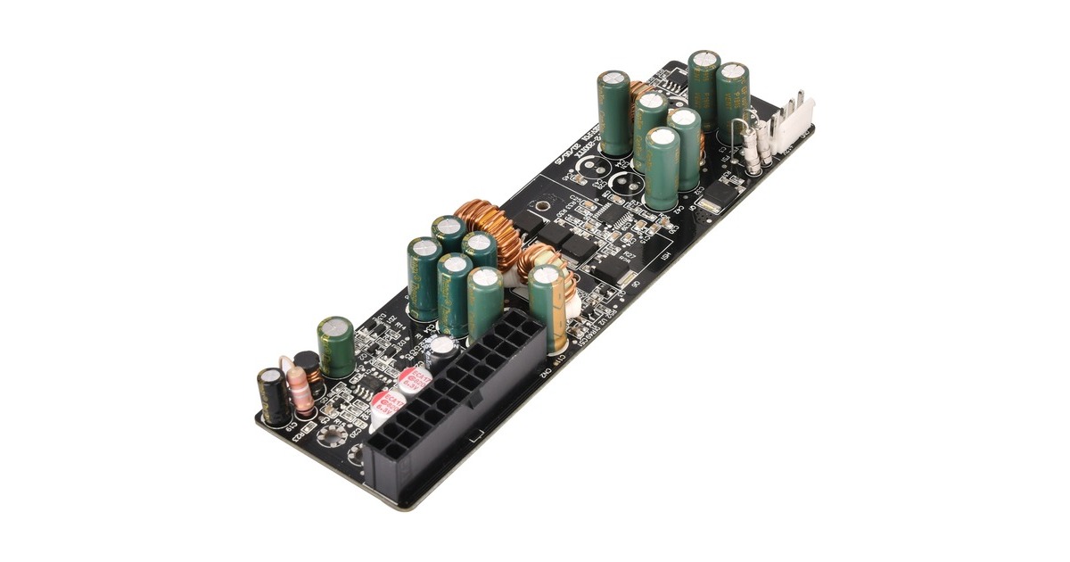 DC Board Abmessungen: 160 mm (B) x 25 mm (H) x 45 mm (T). Das Netzteil besitzt einen 24-Pin Mainboardanschluss, 1x 8/4-Pin EPS/ATX 12 Volt Anschluss, 3x SATA-Anschlüsse und 1x 4-Pin Peripherie Anschluss. |