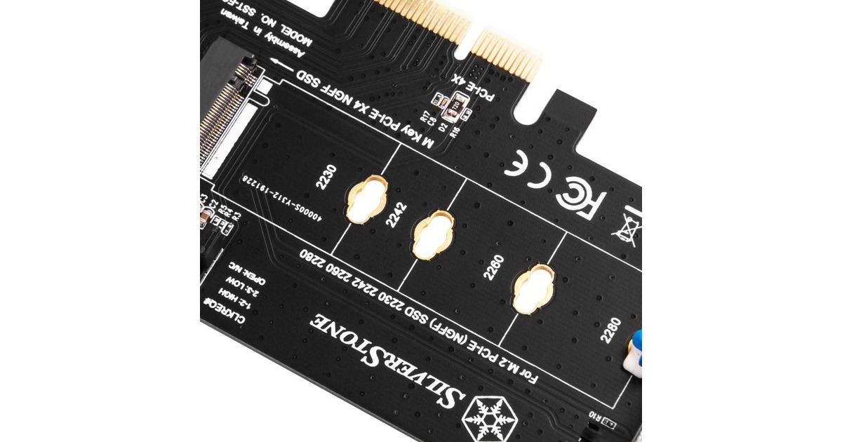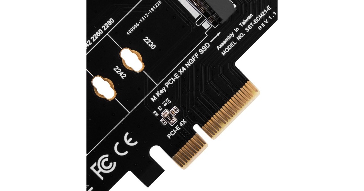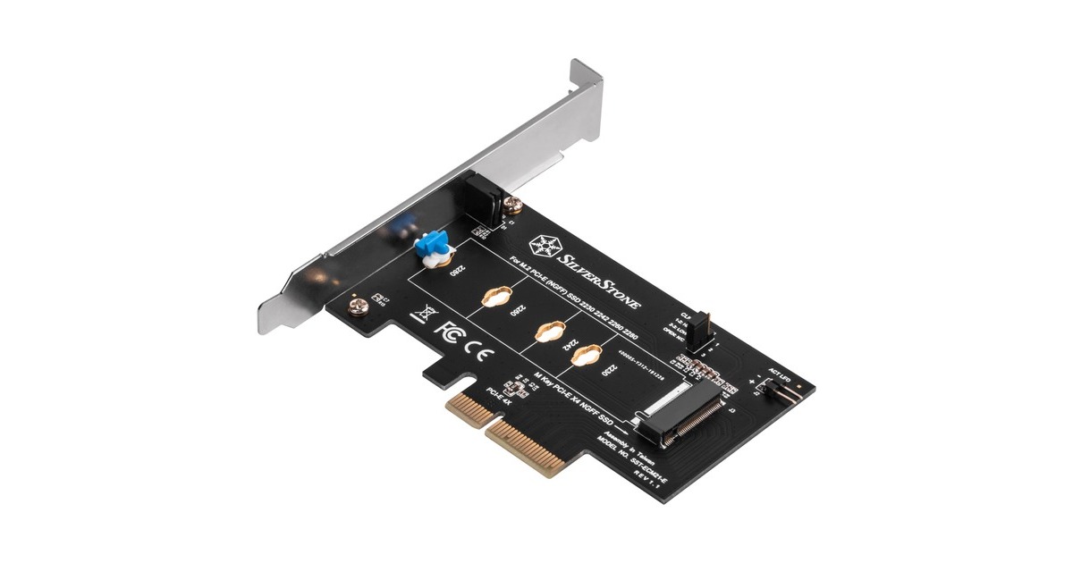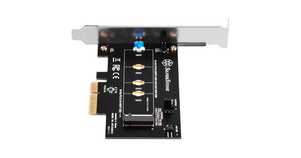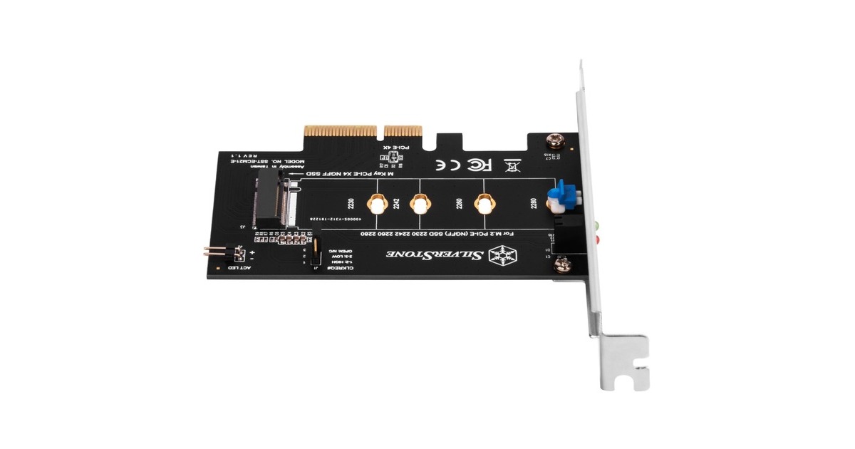 Die SilverStone SST-ECM21-E PCIe-3.0-x4 Adapterkarte besitzt eineschraubenloses Design für M.2 PCIe / NVMe SSDs. Die SilverStone SST-ECM21-E unterstützt PCIe Gen4 M.2 PCIe / NVMe SSD im Formfaktor 2230, 2242, 2260 und 2280. CLKREQ-Überbrückungsstecker. Die LED-Anzeige der SST-ECM21-E zeigen den Status der M.2 PCIe-NVMe SSDs an.Art.-Nr.: 1643865