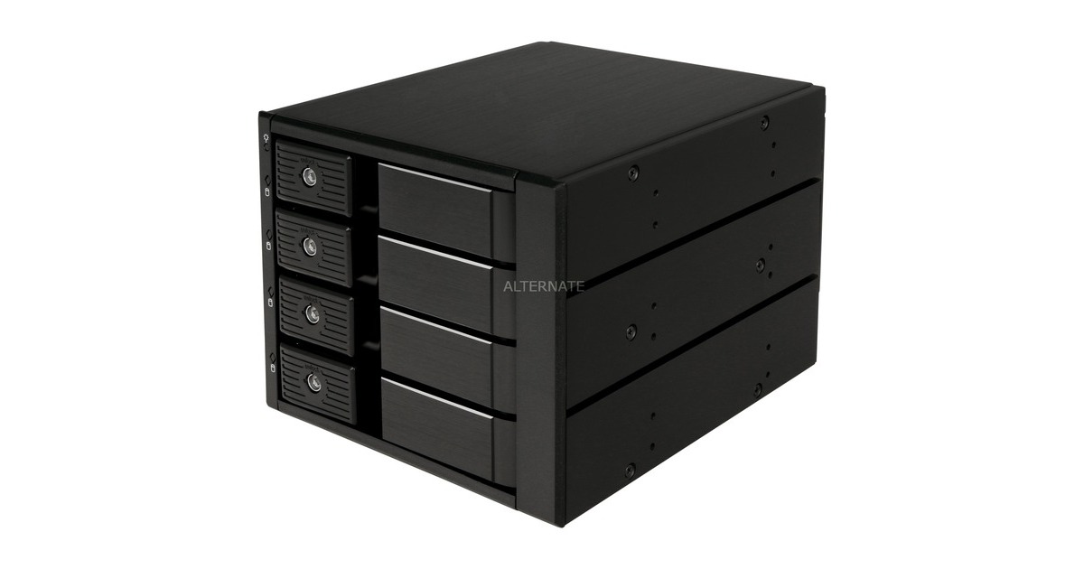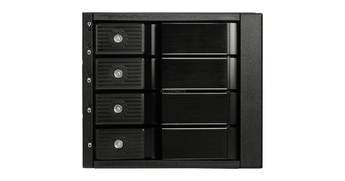 Das SilverStone FS304-12G belegt drei 5,25-Zoll-Geräteeinschübe und bietet Platz für vier 3,5-Zoll-SAS-12G-/SATA-6Gbit/s-Laufwerke in einem Hot-Swap-fähigen Käfig. Es besitzt ein einstellbares LED-Laufwerksstatus- und Lüfterkontrollsystem, ein Trayless & schraubenloses Design sowie ein individuelles Metallschloss für jedes Laufwerk für zusätzliche Sicherheit. Beim vollständig aus Aluminium gefertigten Gehäuse mit schöner gebürsteter Oberfläche und unabhängiger Laufwerksstatus-LED sorgt ein eingebauter Lüfter für hervorragende Wärmeableitung. Es bietet vollständige Unterstützung der Hot-Swap-Funktion.Art.-Nr.: 1866029