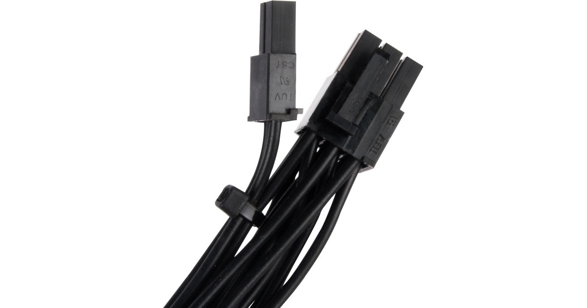 1x 24-Pin-ATX12V-2.x, 1x 4+4-Pin-12V, 1x 4-Pin-3,5", 3x 4-Pin-5,25", 2x 6+2-Pin-Grafik, 4x 15-Pin-SATA |