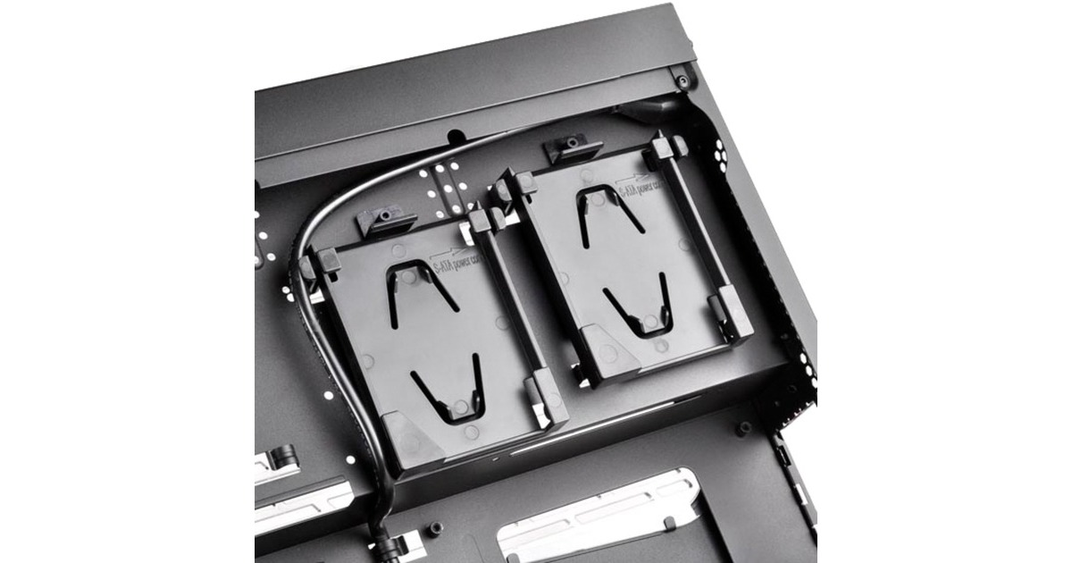 Vorrichtung für Kensington Lock; horizontal und vertikal aufstellbar; Werkzeugfreies Laufwerkskäfig-Design |