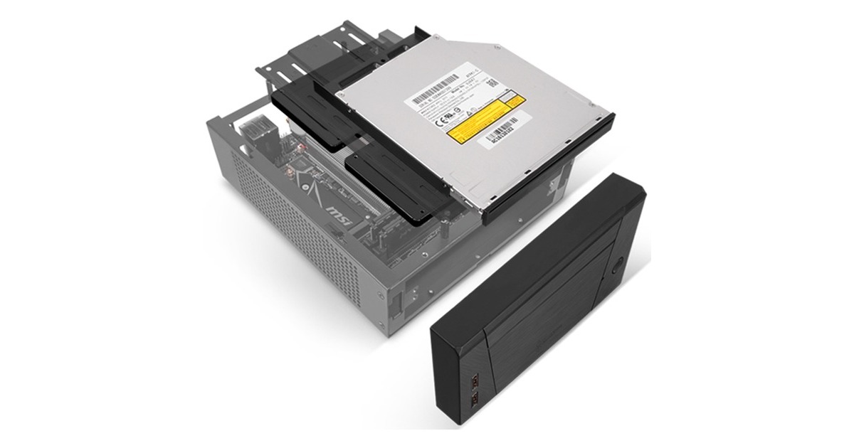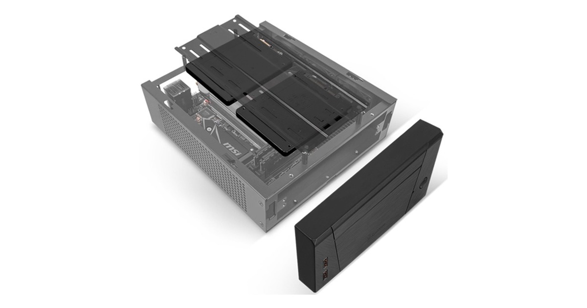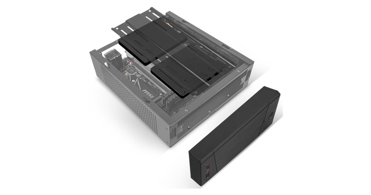 Das Milo 10 ist ein superkompaktes und modulares Mini-ITX-Chassis. Super-klein bei nur 2,8 Litern oder 3,7 Litern (inklusive austauschbarer oberer Abdeckung zum Ändern der Gehäusegröße). Durch den modularen Aufbau werden unterschiedliche Konfigurationen für verschiedene Komponenten möglich (9,5 mm schmaler Außendurchmesser, 3,5-Zoll-Festplatte, 2,5-Zoll-SSD, 120/140-mm-Lüfter). Das Gehäuse besitzt eine VESA-Montageplatte zur Integration mit Monitoren.Art.-Nr.: 1758441