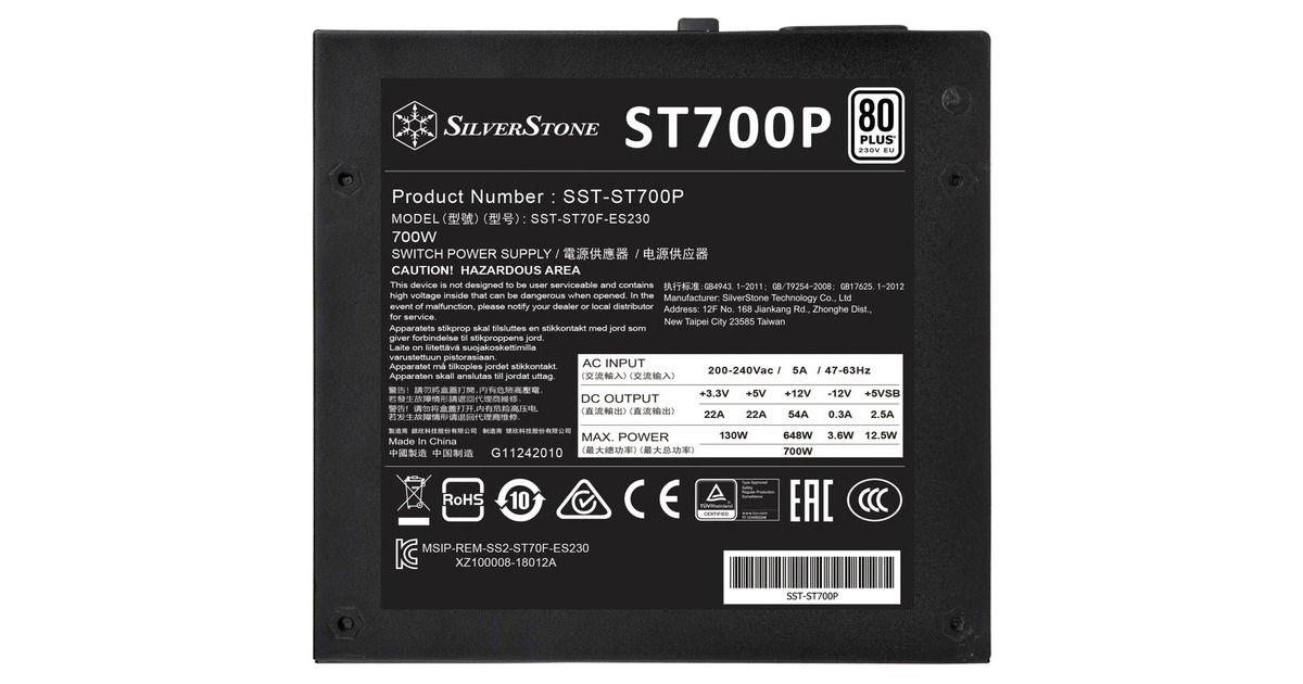 Das SilverStone SST-ST700P 700W ist ein 700 Watt starkes ATX-Netzteil mit 80 PLUS-Zertifizierung. Es besitzt zwei 8-Pin-EPS mit Unterstützung mehrerer 8-/6-poliger PCIe-Anschlüsse und eine kontinuierliche 24/7 Ausgabe bei einer Betriebstemperatur von 40° C. Die erstklassige einzelne +12-Volt-Schiene, die aktive PFC-Schaltung und der leise 120-mm-Lüfter mit einer minimalen Geräuschemission von 18 dBA runden die Ausstattung des SST-ST700P 700W ab.Art.-Nr.: 1758693