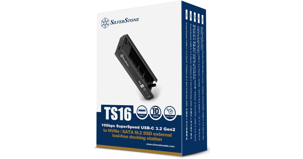 Das Laufwerksgehäuse SilverStone SST-TS16 ist eine externe 10-Gb/s-SuperSpeed-USB-C-3.2-Gen-2-zu-NVMe/SATA-M.2-SSD-Dockingstation, die kein Werkzeug erfordert. Es unterstützt verschiedene Längen von M.2-SSDs (22 x 42 mm, 22 x 60 mm, 22 x 80 mm). Die externe USB-3.2-Gen-2-Type-C-Schnittstelle bietet SuperSpeed-Übertragung bis 10 Gb/s. Die USB-Brücke ermöglicht automatischen Wechsel von USB-zu-PCIe-Modus oder USB-zu-SATA-Modus. Art.-Nr.: 1799054