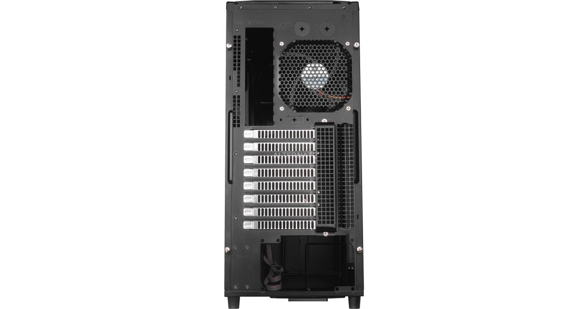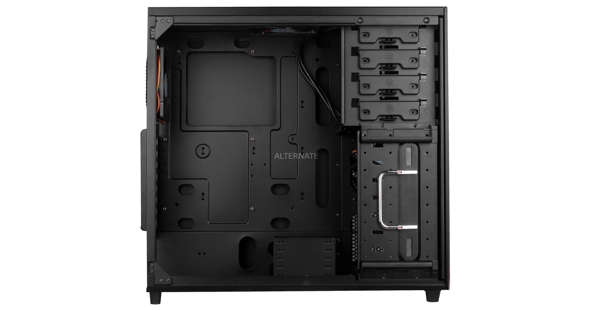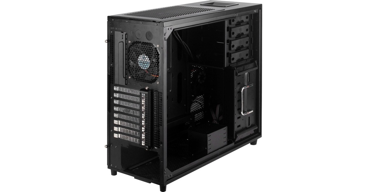 die Frontanschlüsse befinden sich gut zugänglich an der Oberseite; ein 120-mm-Lüfter im rechten Seitenteil vorhanden, ein weiterer 120-mm-Lüfter einbaubar; ein 120-mm-Lüfter im Gehäusedeckel vorhanden, ein weiterer 120-mm-Lüfter einbaubar; ein 120-mm-Lüfter im Gehäuseboden einbaubar |