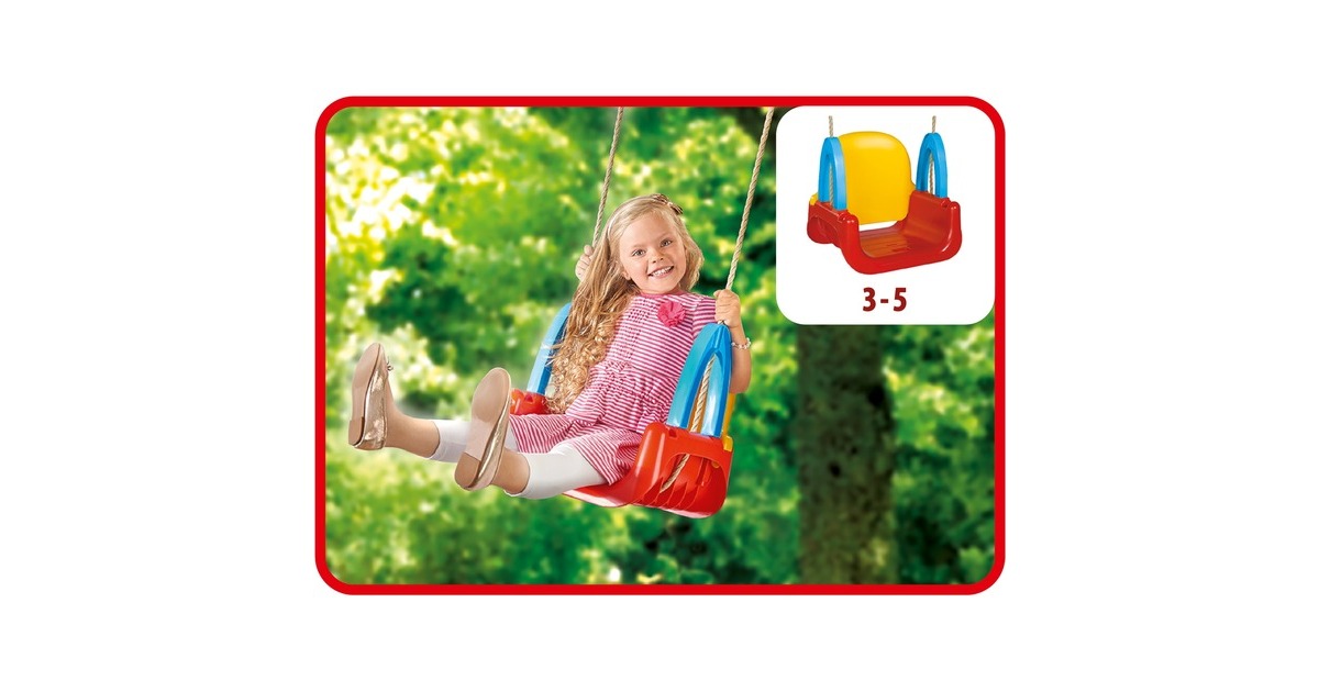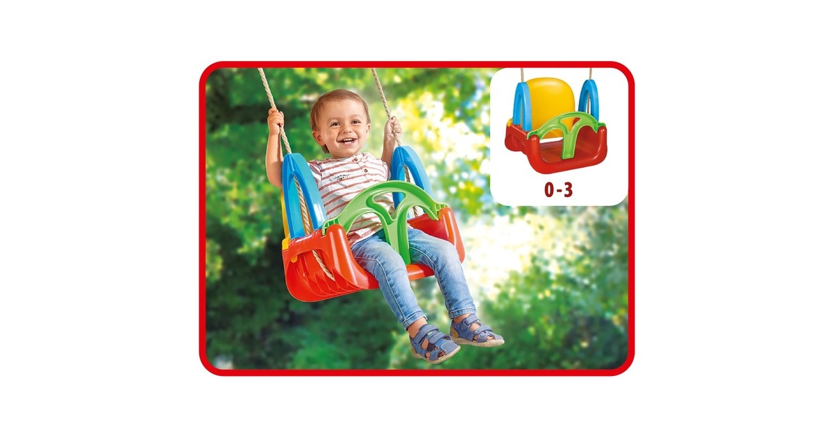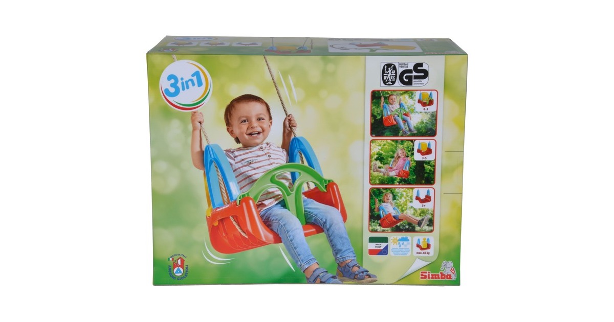 3 in 1 Schaukel: Wachse mit der coolen 3in1 Schaukel. Sie kann je nach Altersgruppe verändert werden. Für die einzelnen Altersabschnitte (0-3, 3-5 und ab 5 Jahren) gibt es entsprechende Sicherheitseinstellungen für die Schaukel. Durch einfache Montage der Rückenlehne kann die Schaukel schnell dem Alter des Kindes angepasst werden.Art.-Nr.: 1369540