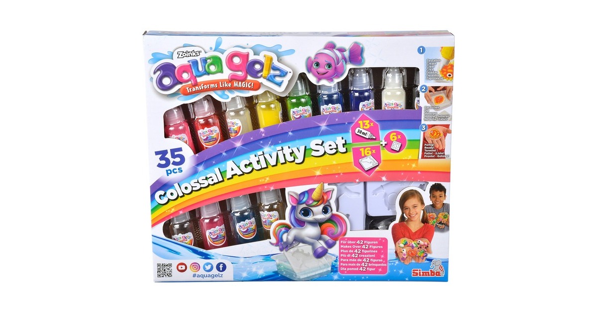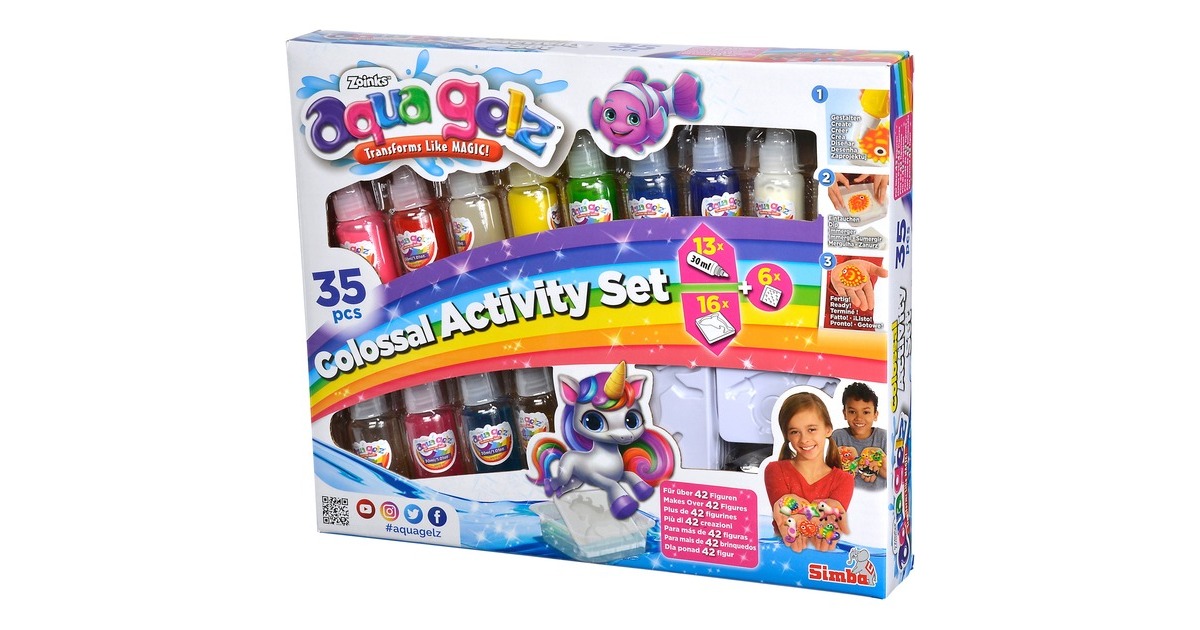 Das Aqua Gelz Colossal Set ist einfach zu verwenden und ein kreativer Spaß mit einer großen Menge an Materialien. Mit den Aqua Gelz entstehen im Handumdrehen einzigartige, weiche 3D-Figuren, bei deren Gestaltung Kinder ab 8 Jahren ihrer Kreativität freien Lauf lassen können. Die verschiedenen Farbgele werden dazu in die mitgelieferten Formen gegeben und danach in ein Wasserbad gelegt. Dadurch verwandeln sich die Motive in Sekunden in eine tolle Figur. Das Set beinhaltet 13 Flaschen Farbgel, 16 verschiedene Formen und 6x Wasserzusatz. Das Material reicht zum Erstellen von bis zu 42 Figuren.Art.-Nr.: 1885013