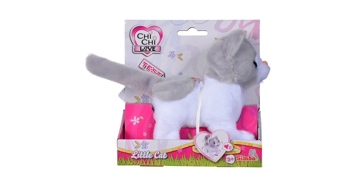 Mit der süßen Katze hat man jede Menge Spaß. Sie kann laufen und mit dem Schwanz wackeln. Dabei macht sie tolle Geräusche. ChiChi LOVE Little Cat von Simba Toys ist 17 cm groß und für Kinder ab fünf Jahren geeignet. Art.-Nr.: 1712312