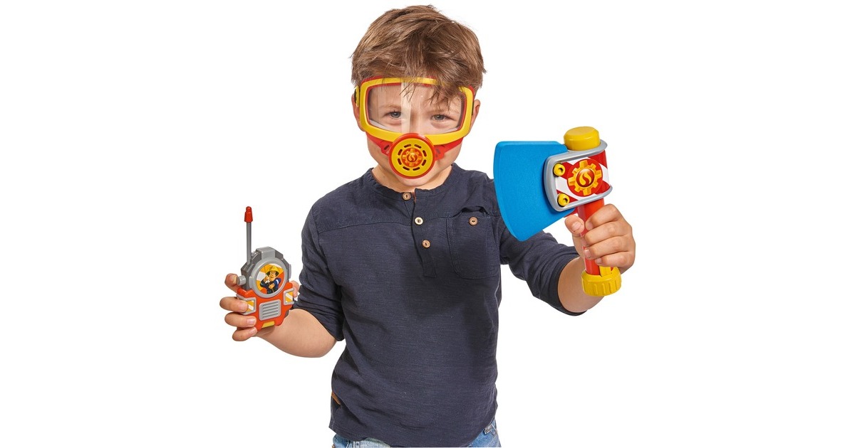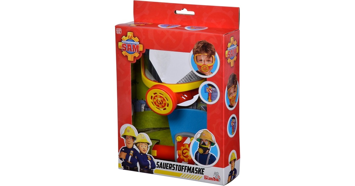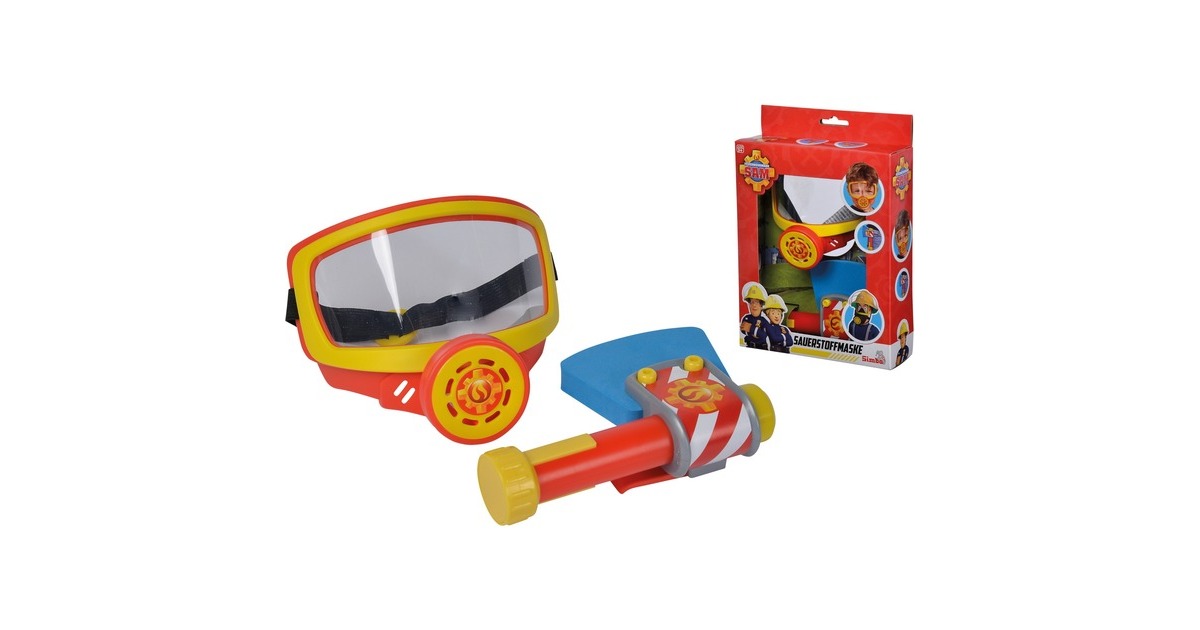 Bevor sich der mutige Feuerwehrmann Sam mit seinen Kollegen in brennende Gebäude mit starker Rauchentwicklung begibt, muss er sich erst noch seine Schutzausrüstung anziehen. Dazu gehört natürlich auch eine Sauerstoffmaske. Kleine Feuerwehrmänner- und frauen können sich ihre Maske jetzt ganz einfach mit einem Gummizug am Kopf befestigen und sind so sicher geschützt. Im Set ist auch eine Axt enthalten, mit der viele Szene aus der Serie perfekt nachgespielt werden können. Für Kinder ab 3 Jahren geeignet.Art.-Nr.: 1708658