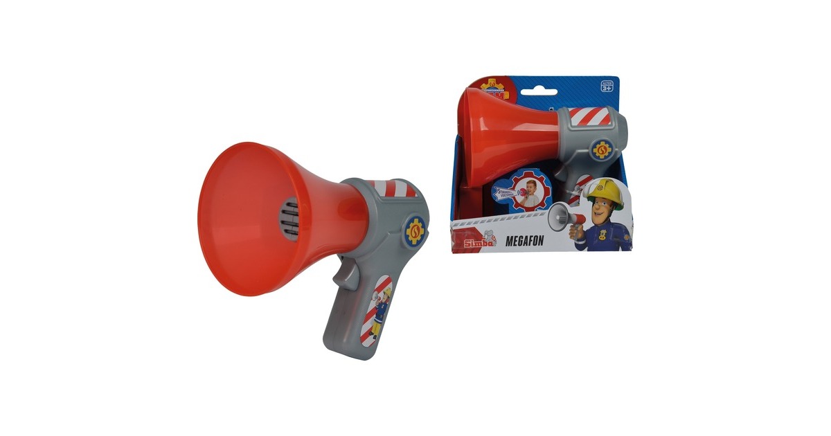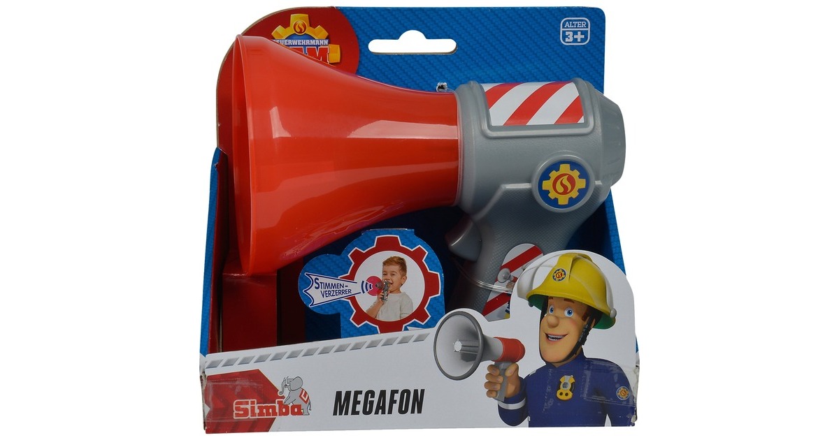 Feuerwehrmann Sam Megaphon: Lautstarke Action mit dem Feuerwehrmann Sam Megaphon! Das 16cm große Megaphon hat eine integrierte Stimmenverzerrer-Funktion und bietet den Kleinen eine Menge Spielspaß.Art.-Nr.: 1301601