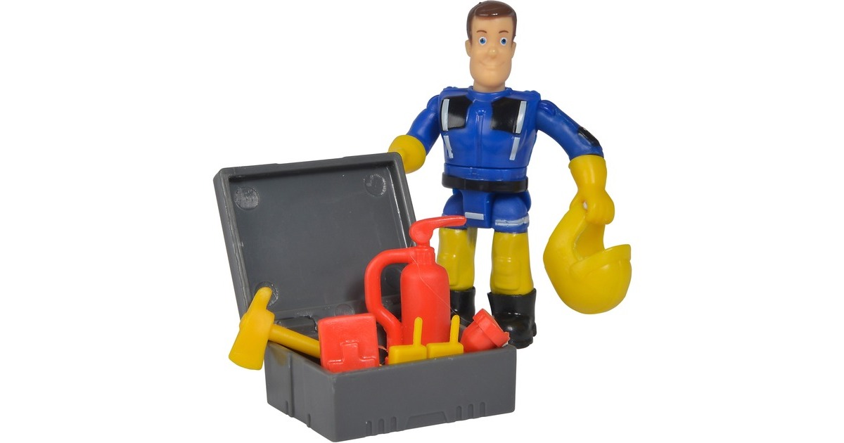 Im Set ist das Fahrzeug, der Feuerwehrmann Sam und die Box mit dem Zubehör enthalten. |
