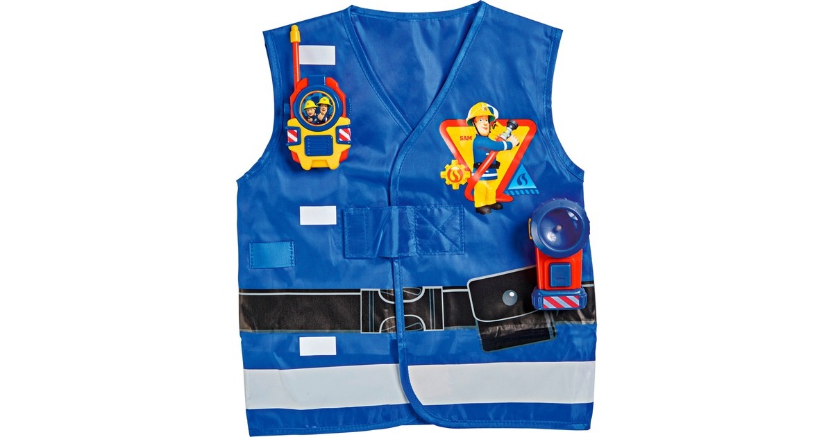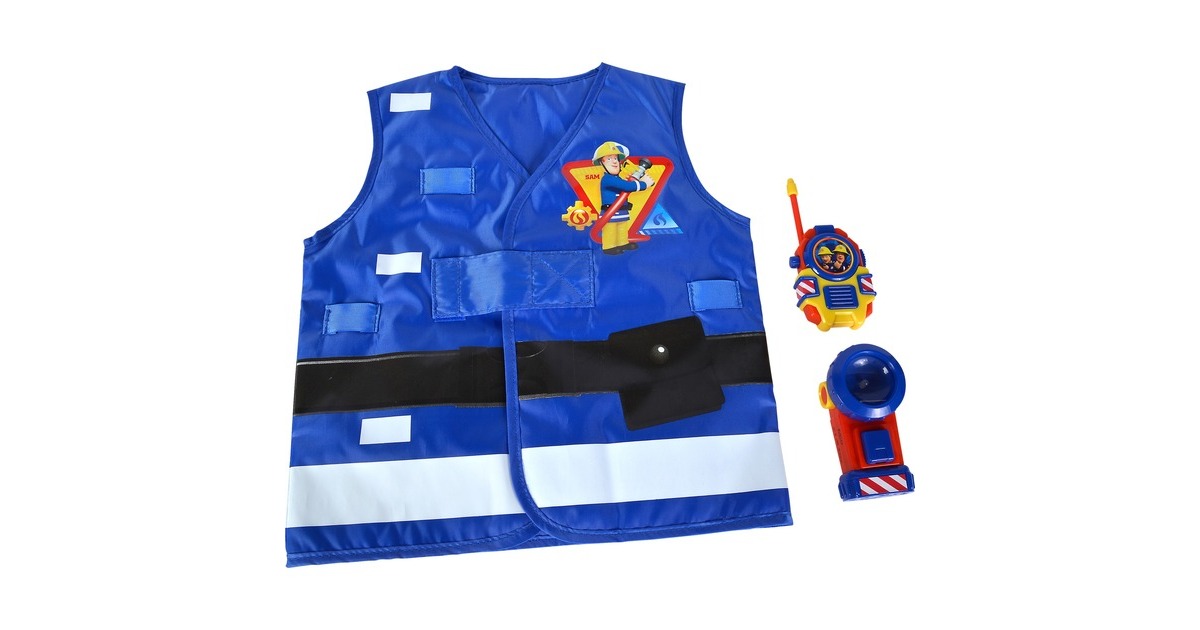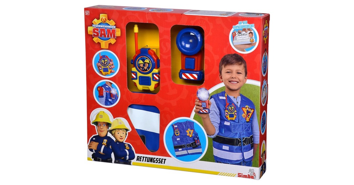 Mit dem Rettungsset können Kinder selbst in die Rolle des Feuerwehrmanns schlüpfen und ihre eigenen Einsätze und die Abenteuer aus der Serie nachspielen. Die blaue Weste ist schnell angezogen und kann per Klett verschlossen werden. Auf der Brust ist ein cooles Feuerwehrmann Sam Motiv abgebildet. Damit sich die Feuerwehrleute auch im Dunkeln zu den Einsätzen begeben können verfügt das Set über eine Taschenlampe mit Lichtfunktion. Diese ist 11 cm groß. Mit dem 14 cm großen Walkie-Talkie lässt sich schnell Verstärkung rufen und man kann sich mit seinen Kollegen verständigen. Die Einsatzgeräte können an der Weste festgeschnallt oder angehängt werden. Somit ist jedes Hilfsmittel schnell griff- und einsatzbereit.