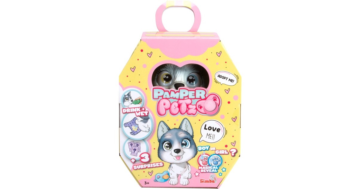 Zauberhaftes Spielen mit dem Pamper Petz Husky von Simba. Dieser hinreißende kleine Freund regt mit seiner Trink- und Nässfunktion die Phantasie des Kindes an und lehrt einfühlsame Fürsorge. Viel Spielfreude beim Wechseln der Windel und strahlende Augen, wenn die magische Pfote das Geheimnis des Geschlechts enthüllt. Das Set beinhaltet drei Überraschungen, die das Füttern und Pflegen zu einem interaktiven Erlebnis machen. Ein inspirierendes Spielzeug, das Herzen erwärmt und Lächeln zaubert!Art.-Nr.: 100042189