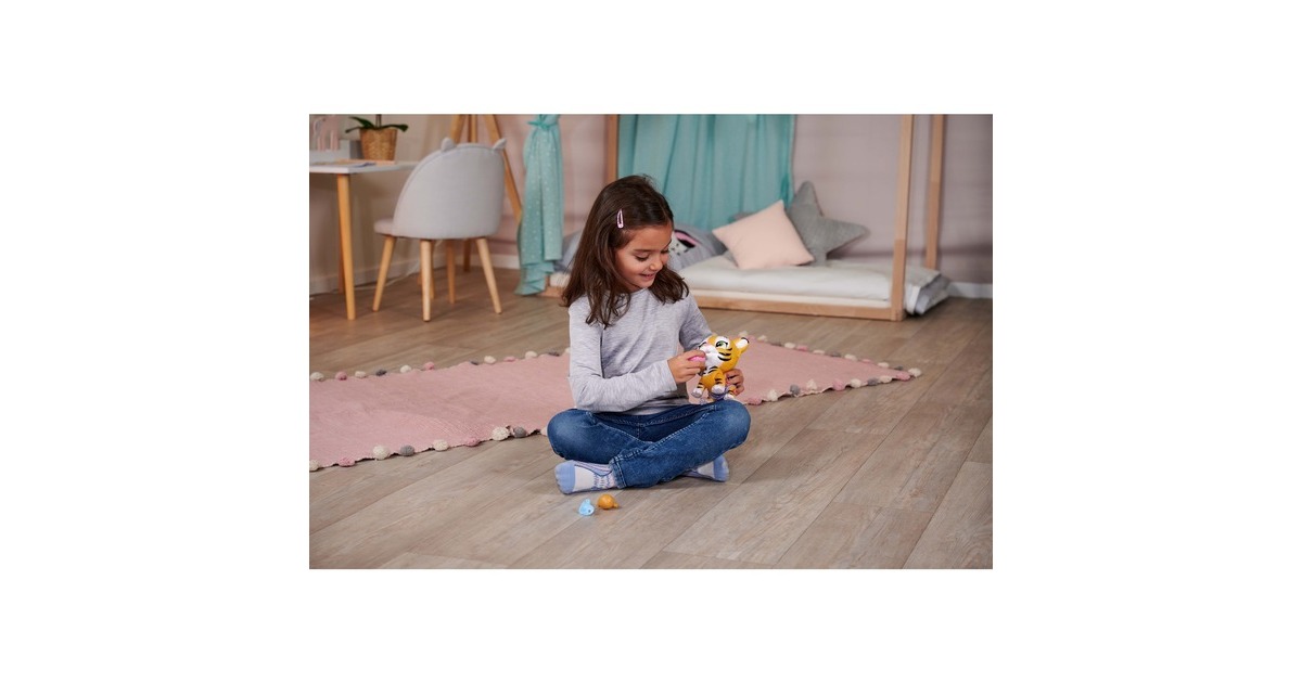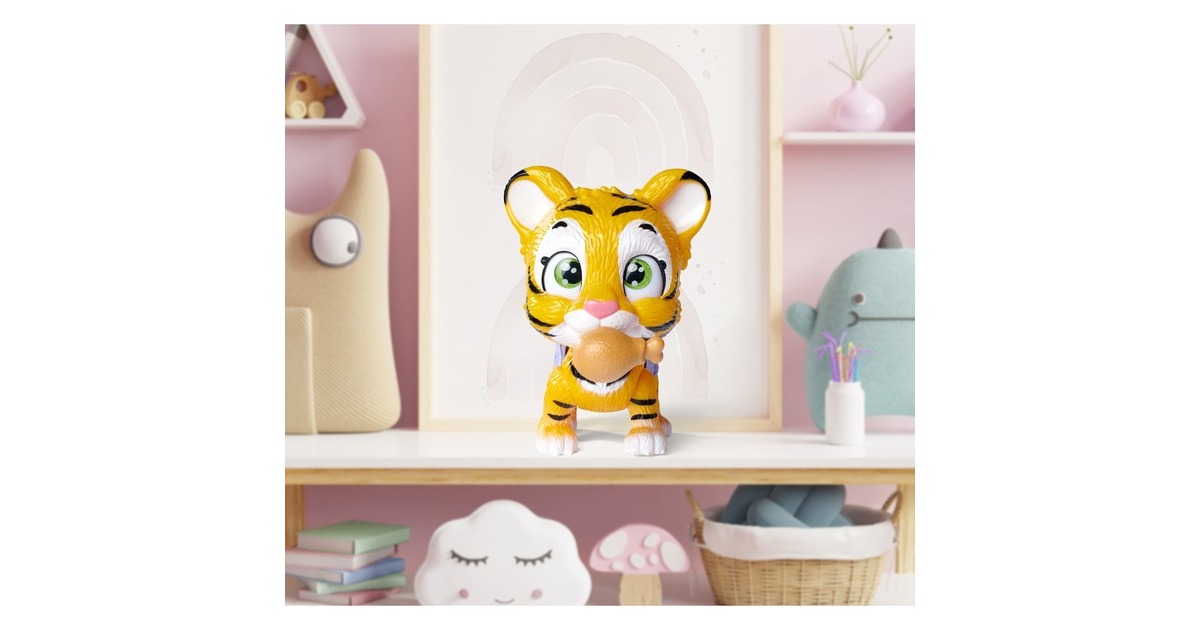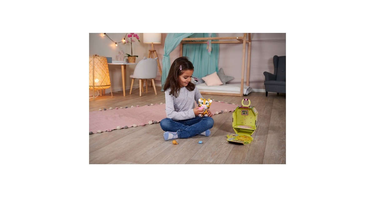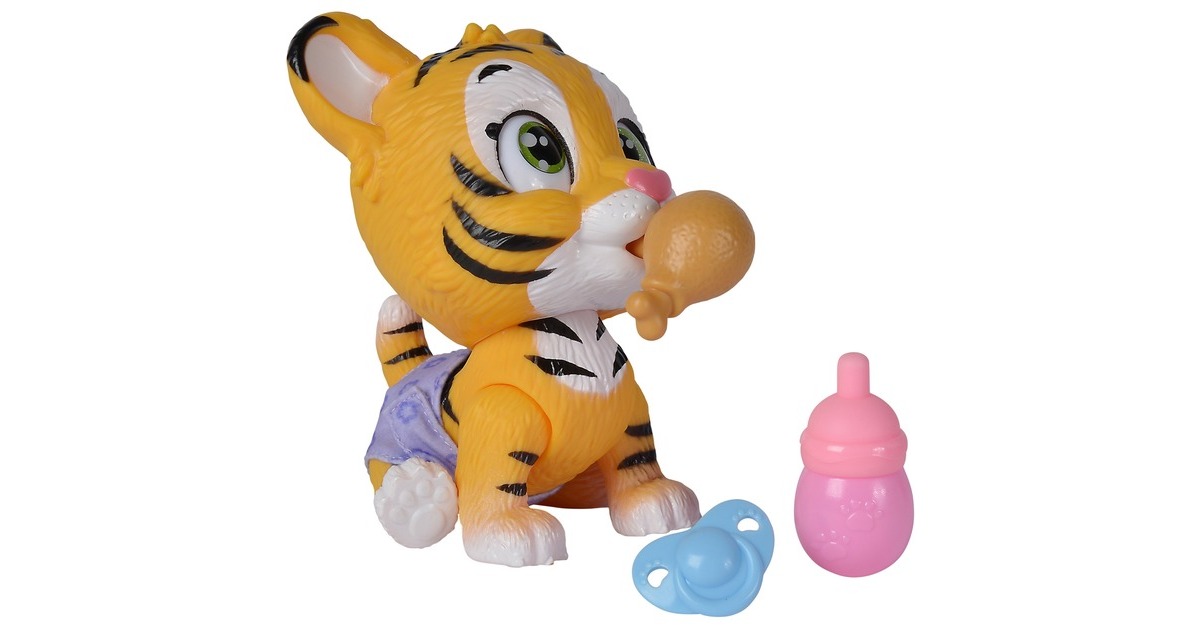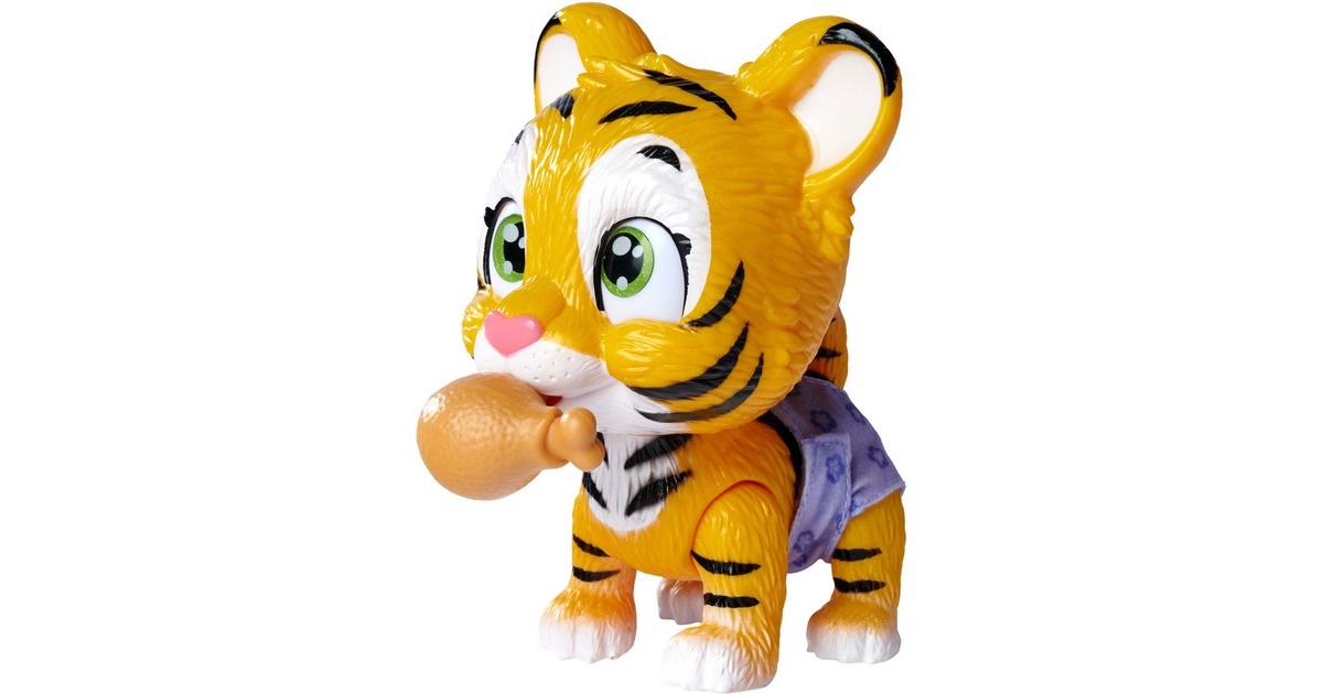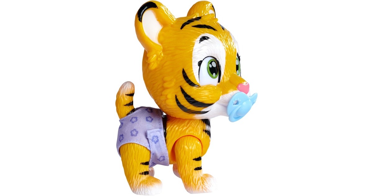 Pamper Petz - die süßen Pamper Petz Tierbabys suchen einen Besitzer, der sie adoptiert, ihnen einen Namen gibt und sich liebevoll um sie kümmert. Die süße Windelbande besteht aus einem Hündchen, einem Kätzchen und einem Häschen, die alle eine Windel tragen. Mit Trink- und Nässfunktion - das süße Katzenbaby mit den großen glitzernden Augen kann richtig trinken. Ab und zu macht es auch einmal in die Windel. Dazu klappt man einfach die Hinterbeine nach vorne und setzt das Kätzchen hin. Ist die Windel nass, verfärbt sich das Innere Gelb. Magische Pfote - ob es sich bei dem eigenen Haustier um einen Jungen oder ein Mädchen handelt, verrät die magische Pfote. Wischt man mit Wasser darüber, so verfärbt sich diese entweder Blau oder Pink und gibt somit Aufschluss über das Geschlecht. Mit drei Überraschungen - im Set sind neben dem 15cm großen Tigerbaby drei Überraschungen zum Pflegen und Füttern des Kätzchens sowie eine Adoptionsurkunde zum Beschriften enthalten.