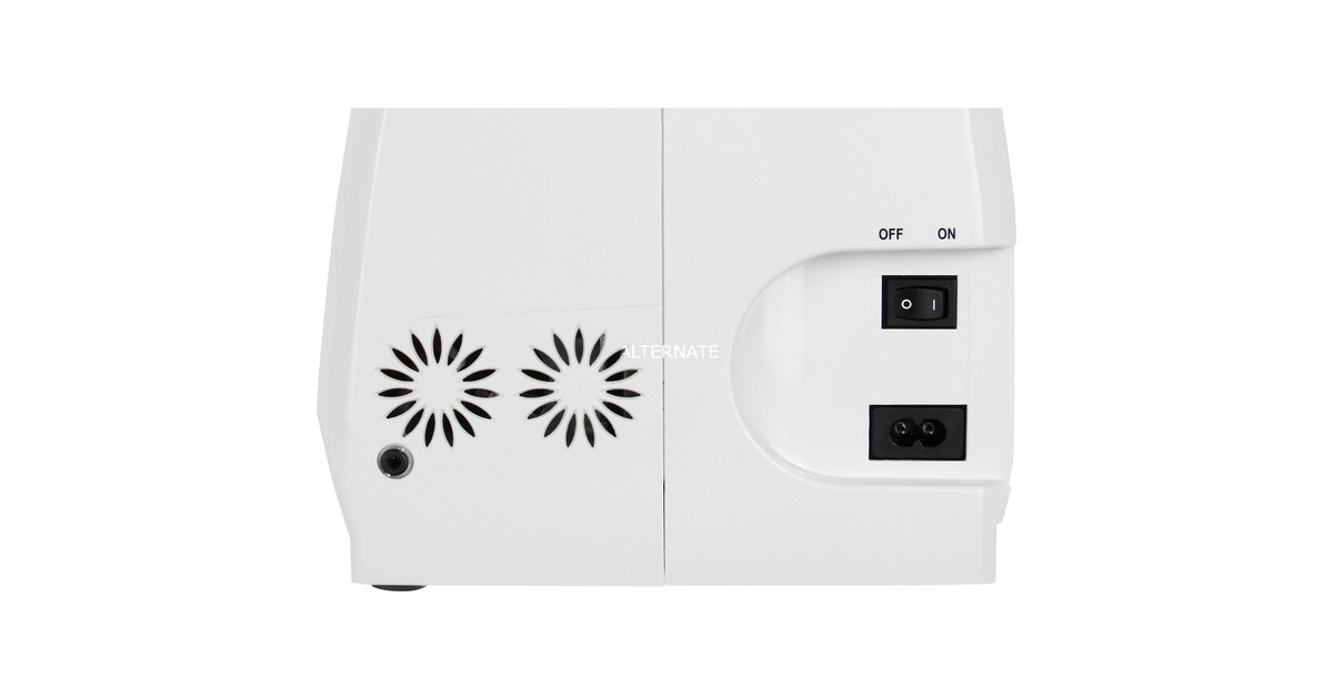 Nadeleinfädler, Fadenabschneider, Aufspulautomatik, Knopflochautomatik, Garnrollenhalter, Nählicht |