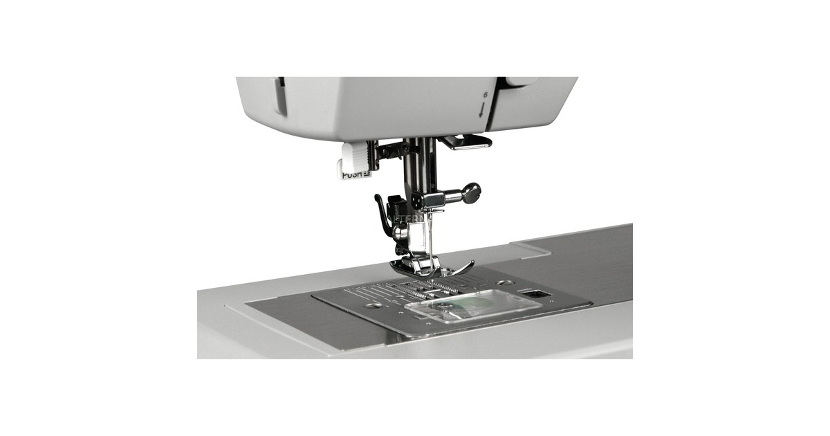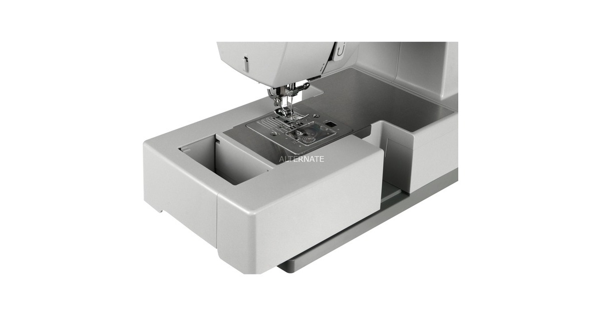 Stabiler Metallrahmen mit rostfreier Stahlbodenplatte, für einen festen Stand. Eingebauter Nadeleinfädler: Schnell und sicher eingefädelt. Top Drop-in Bobbin: Von oben einzulegende Spule mit klarer Spulenabdeckung. Einstufiges Knopfloch: Knopf in den Knopflochfuß einlegen und starten. In einem Nähvorgang wird das Knopfloch genäht. Extra-hohe Nähgeschwindigkeit. Transporteurversenkung. Zubehör im Anschiebetisch. |