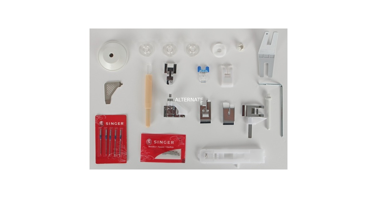 Nadeleinfädler, Fadenabschneider, Garnrollenhalter, Nählicht |