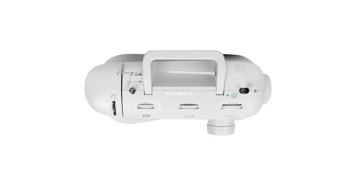 Nadeleinfädler, Fadenabschneider, Aufspulautomatik, Knopflochautomatik, Garnrollenhalter, Nählicht |