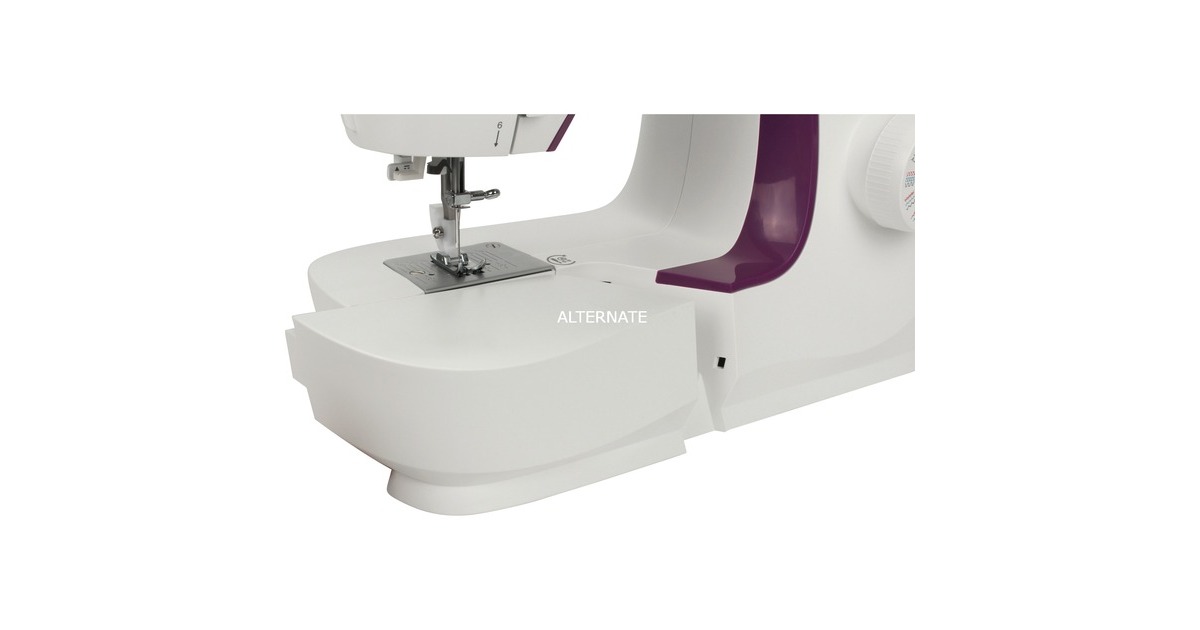Nadeleinfädler, Fadenabschneider, Aufspulautomatik, Knopflochautomatik, Garnrollenhalter, Nählicht |