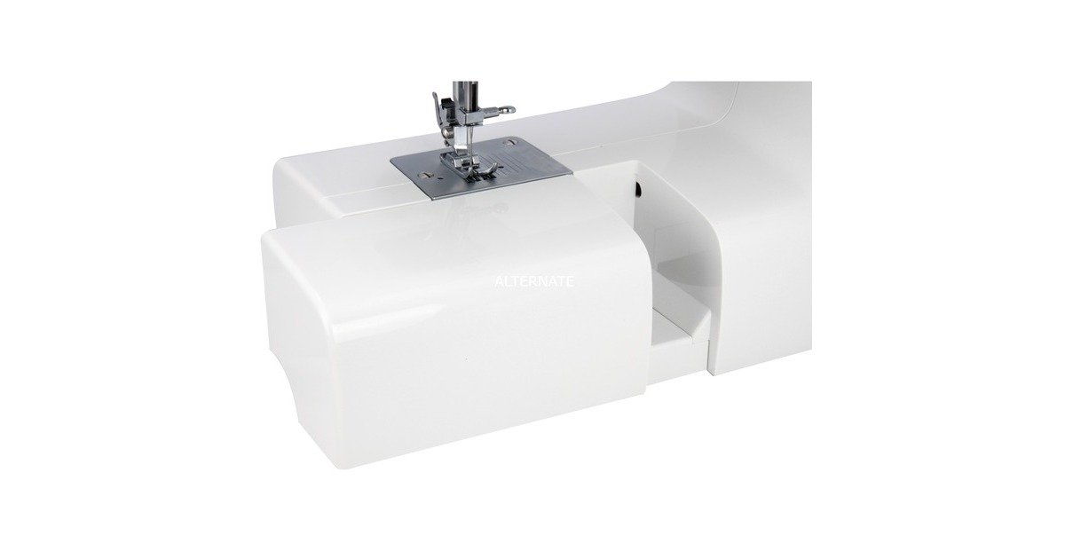 Allzweckfuß, Reißverschlussfuß, Knopflochfuß, Knopfannähfuß, Pinsel/Nahttrenner, Kanten-/Quiltführung, Nadel, großer und kleiner Garnhalter, Spulen, Schraubenzieher, Stopfplatte, Schutzhaube |