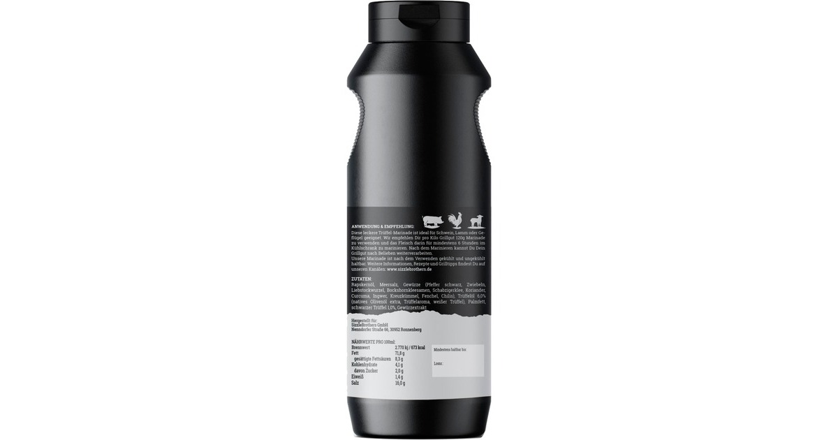 Trüffel war über einen langen Zeitraum ein Produkt, dass nahezu ausschließlich in der gehobenen Küche zu finden war. Mittlerweile sind die Preise für Trüffel allerdings erschwinglich geworden, sodass immer mehr Menschen in den Genuss dieses einzigartigen Produkts kommen. Den einzigartig leckeren Geschmack haben die SizzleBrothers nun in der Trüffelmarinade #PremiumTrüffel verewigt. Mit dieser Marinade verfeinert man Gerichte mit dem leckeren Aroma von weißem und schwarzen Trüffel. Ob kurzgegrilltes wie Nackensteaks, leckere Lammlachse, hochwertiges Rindersteak oder auch Longjobs wie Pulled Chicken – die SizzleBrothers Grillmarinade #PremiumTrüffel bringt an alles einen wahnsinnig leckeren Geschmack.Art.-Nr.: 1679238