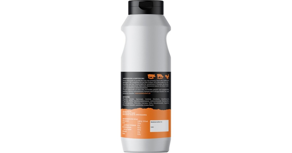 Alles schmeckt besser mit Bacon, so sagt man. Auf diesem Spruch basiert auch diese Grillmarinade der SizzleBrothers, die das Sortiment der Marinaden (#Scharfeschote, #Alterpfeffer und #Schwarzerknobi) perfekt ergänzt. #SweetBacon ist für alle Cuts vom Schwein, Rind oder Geflügel geeignet. Ob klassisch Nackensteaks oder Longjobs wie Pulled Pork – diese Marinade bringt noch einmal einen Extraschuss Geschmack an Gegrilltes. Dabei gilt wie immer: Erlaubt ist was gefällt und es gibt viele Einsatzmöglichkeiten – nicht nur am Grill. Geschmacklich bringt sie nicht nur eine angenehme Süße mit, sondern auch ein leichtes, nicht zu starkes Raucharoma. Die SizzleBrothers Marinade kommt in der praktischen und wiederverschließbaren 500 ml Flasche und eignet sich zum Marinieren von ca. 5 kg Grillfleisch.Art.-Nr.: 1658862