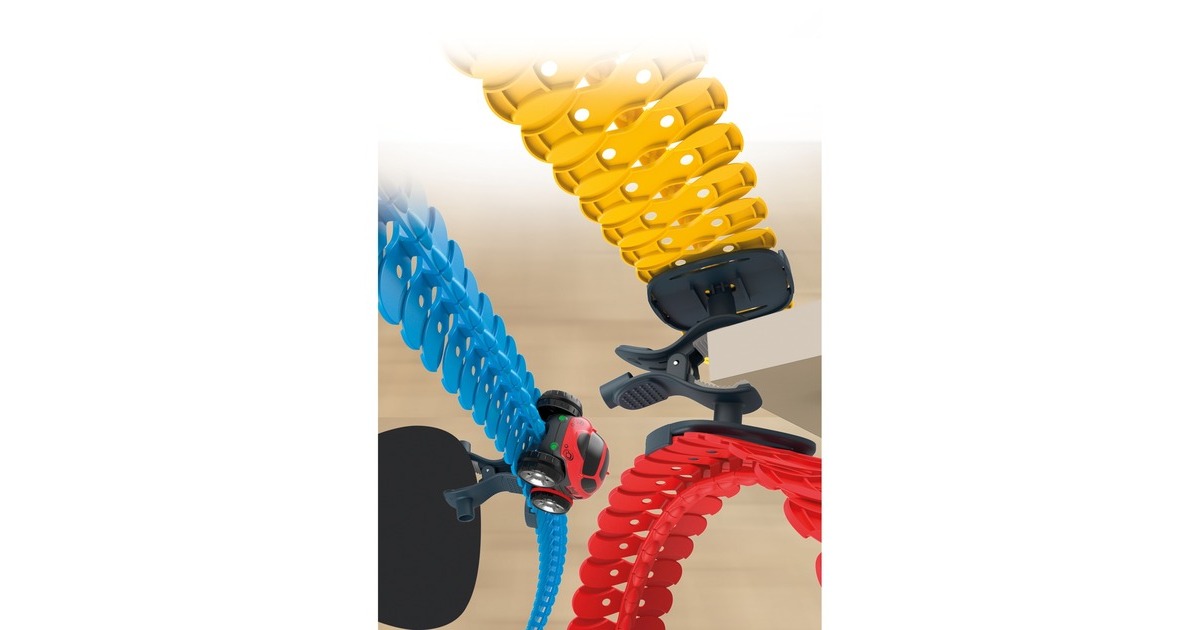 Smoby FleXtreme ist eine komplett neue Spielwelt, die der Kreativität von Kindern keine Grenzen setzt! Mittels flexibler Schienen können die Kids die verrücktesten Rennbahnen zusammenbauen und mit den leistungsstarken FleXtreme Rennautos unglaubliche Stunts und Strecken fahren: inklusive sensationeller Steigungen, über-Kopf-Fahrten und verrückter Abhänge! Mit dem fantastischen FleXtreme Fixing Set Befestigungssatz kann die bestehende FleXtreme Rennbahn ideal ergänzt werden, denn die 2 Multi-Grip Fixierklemmen und 3 Schienen-Supporter ermöglichen eine noch ausgefallenere Rennbahn-Architektur und vereinfachen selbstgebaute Loopings. Dabei können die Schienen-Supporter auf einem der drei Fixierpunkte der Befestigungsklemmen angebracht werden. Diese Supporter geben noch mehr Kurvenkontrolle und verhindern ein Aushaken der Racing Cars durch zu steile Krümmungen. Das Fixiersystem der Multi-Grip Klammern ist bereits von kleineren Kindern leicht zu verstehen und ermöglicht eine Befestigung an einer Vielzahl von Schikanen: Tisch, Vorhänge, Regal oder Stühle, Kleiderschrank, Laken, Stangen, alles lässt sich in die Strecke einbauen. Die Klemmen können auf verschiedene Arten befestigt werden und bieten Platz für bis zu drei Schienen-Supporter gleichzeitig.Art.-Nr.: 1786052