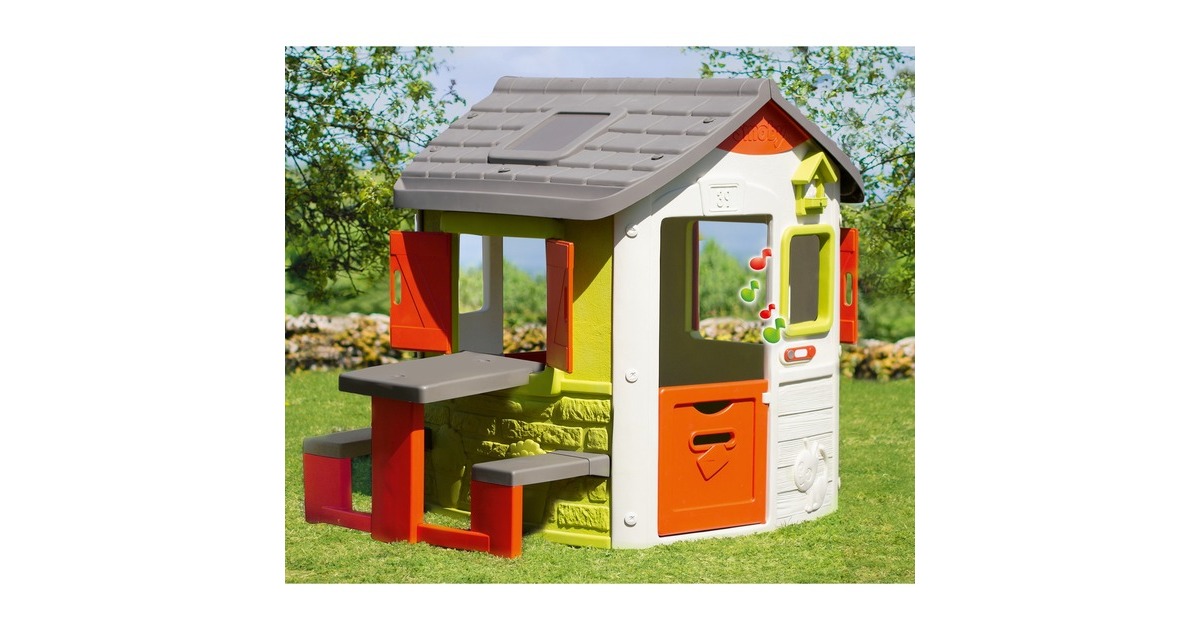 Schicker Picknick-Platz für die Smoby Spielhäuser! Mit diesem Picknicktisch lassen sich das Neo Jura Haus, Mein Neo Haus, Gartenhaus, Mein Neues Haus und Chef Haus von Smoby perfekt erweitern, er kann separat erworben werden und lässt sich kinderleicht ergänzend am Spielhaus befestigen. So hat der Nachwuchs neben Spiel und Spaß rund ums Haus auch noch einen tollen Sitzplatz für sich und alle Freunde. Der hochwertige, UV-stabile Kunststoff ist besonders widerstandsfähig gegen Wettereinflüsse und Ausbleichung.Art.-Nr.: 1843012