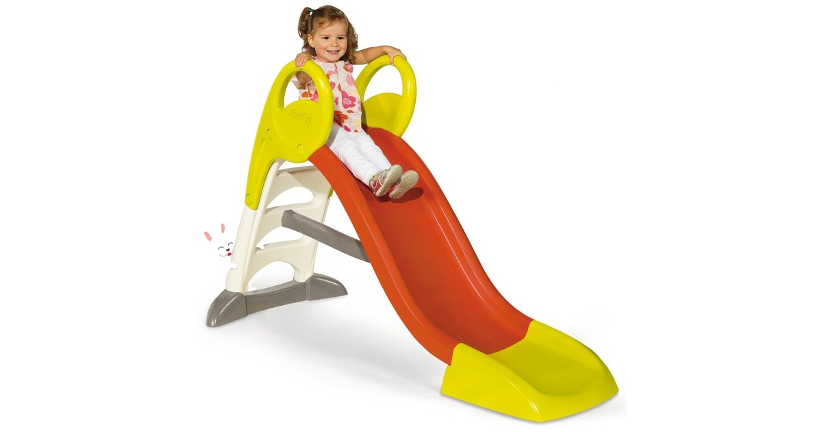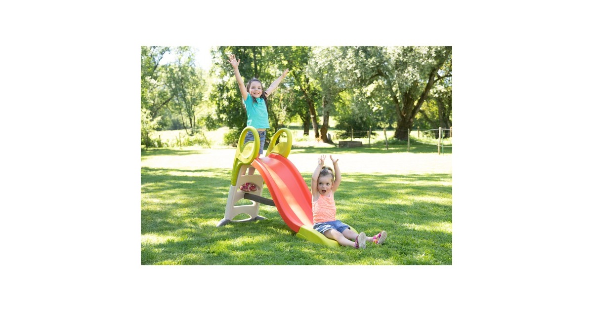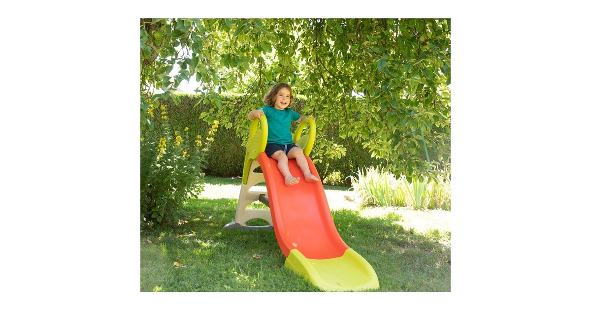 Die KS Rutsche von Smoby: Rutschspaß auch an heißen Sommertagen! Die KS Rutsche von Smoby besticht nicht nur durch ihr farbenfrohes Design und ihre 150 cm Rutschlänge, sie hat auch noch ein ganz besonderes Extra: sie verfügt über einen Wasseranschluss für einen Gartenschlauch und verwandelt sich so im Handumdrehen in eine Wasserrutsche. Der breite Rutschauslauf sorgt für weiche Landungen. Die Leiter ist mit dem Geländer, dem breiten Standfuß und dem Anti-Rutsch-Treppenstufen besonders sicher und stabil. Die Rutsche kann kinderleicht zu ihrer Gesamtgröße (Gesamtlänge: 159 cm, Höhe: 100 cm, Breite: 68 cm) montiert werden. Zum praktischen Verstauen lässt sie sich genauso schnell und einfach demontieren. Die Rutsche überzeugt nicht zuletzt durch den UV-stabilen Kunststoff, der besonders widerstandsfähig gegen Wettereinflüsse und Ausbleichung ist. Wie alle Smoby-Produkte entspricht sie den neuesten Anforderungen an die Produktsicherheit.Art.-Nr.: 1195461