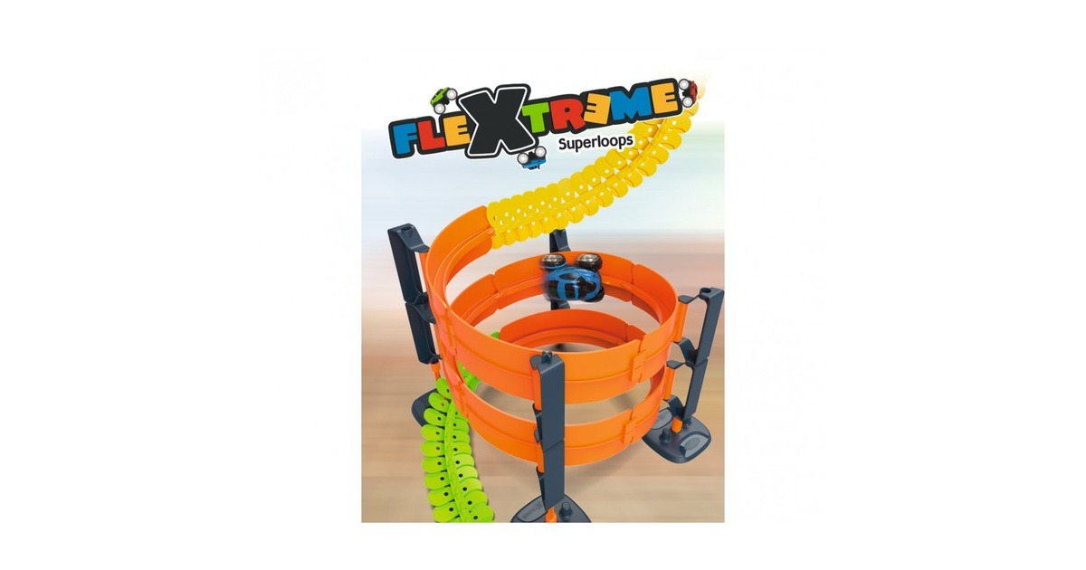 Smoby FleXtreme ist eine komplett neue Spielwelt, die der Kreativität von Kindern keine Grenzen setzt! Mittels flexibler Schienen können die Kids die verrücktesten Rennbahnen zusammenbauen und mit den leistungsstarken FleXtreme Rennautos unglaubliche Stunts und Strecken fahren: inklusive sensationeller Steigungen, Über-Kopf-Fahrten und verrückter Abhänge! Mit dem fantastischen Superlooping Set kann die bestehende FleXtreme Rennbahn ideal ergänzt werden, denn die 2 Superloops ermöglichen eine noch fleXtremere Rennbahn-Architektur. Die 4 langen Schienenteile werden dabei zusammengesteckt. Multifunktional lassen sich diese verschieden einsetzen: als direkt aufeinander folgende Loopingkette, als Einzellooping auf verschiedenen Teilen der Strecke gestellt oder waagrecht gelegt, um eine Einzel- oder Doppelspirale zu fahren. Zudem können die 4 langen Schienenteile geteilt und die Hälften mit Einzelstreckenteilen zu spektakulären Superloops erweitert werden.Art.-Nr.: 1767603