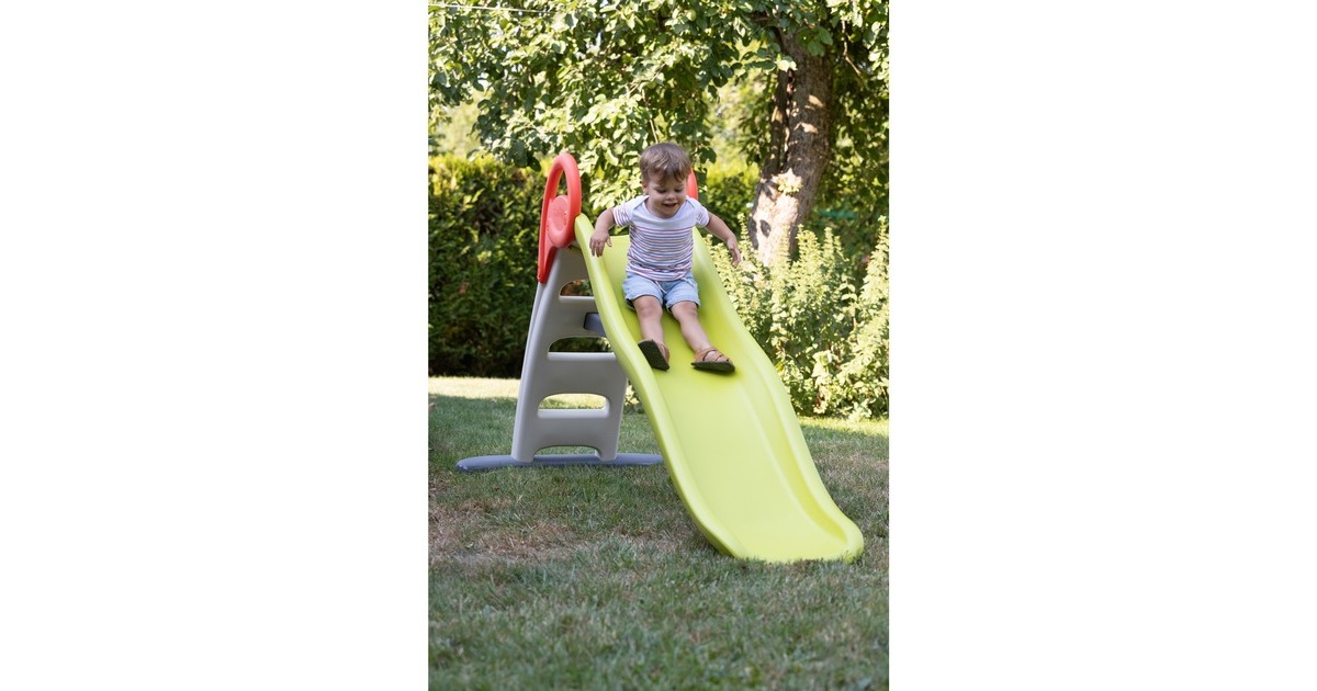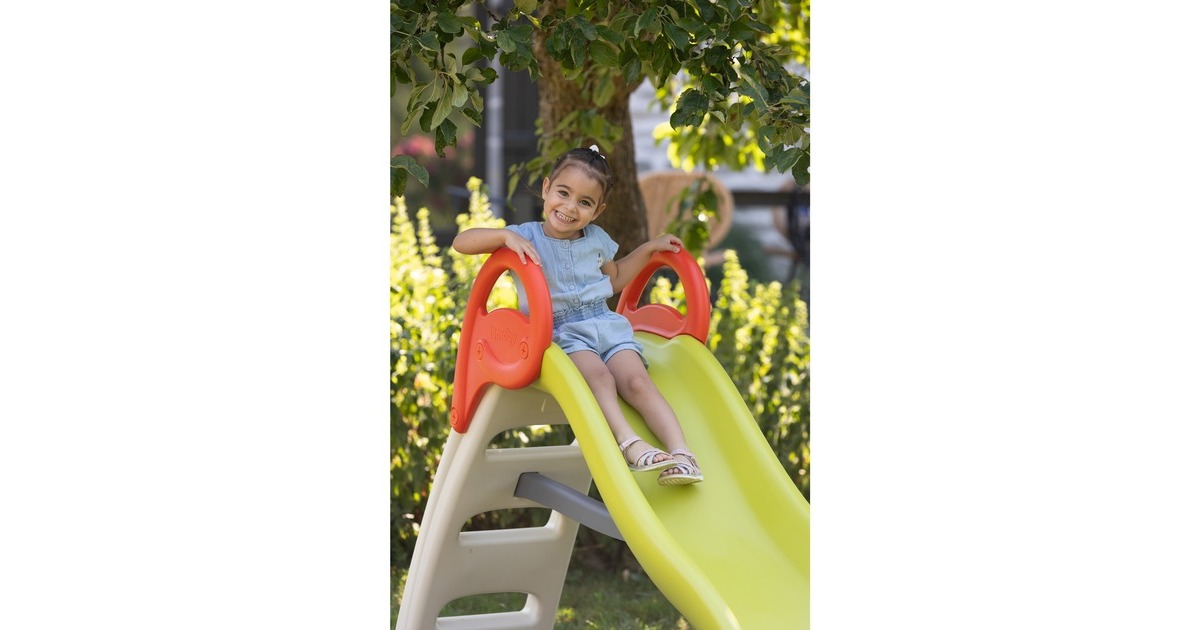 Die Wellenrutsche Funny II von Smoby verspricht tollen Rutschspaß an heißen Sommertagen: Diese Rutsche aus stabilem, UV-beständigem Kunststoff steht dank breitem Standfuß stets stabil, verfügt über rutschfeste Stufen und eine Treppe mit Geländer. Und damit es beim Rutschen auch richtig flott die Rampe herunter geht, gibt es einen Anschluss für einen Wasserschlauch. Der flache Rutschauslauf ermöglicht dabei eine sanfte Landung. Die Länge der Rutsche liegt bei zwei Metern.Art.-Nr.: 100007041