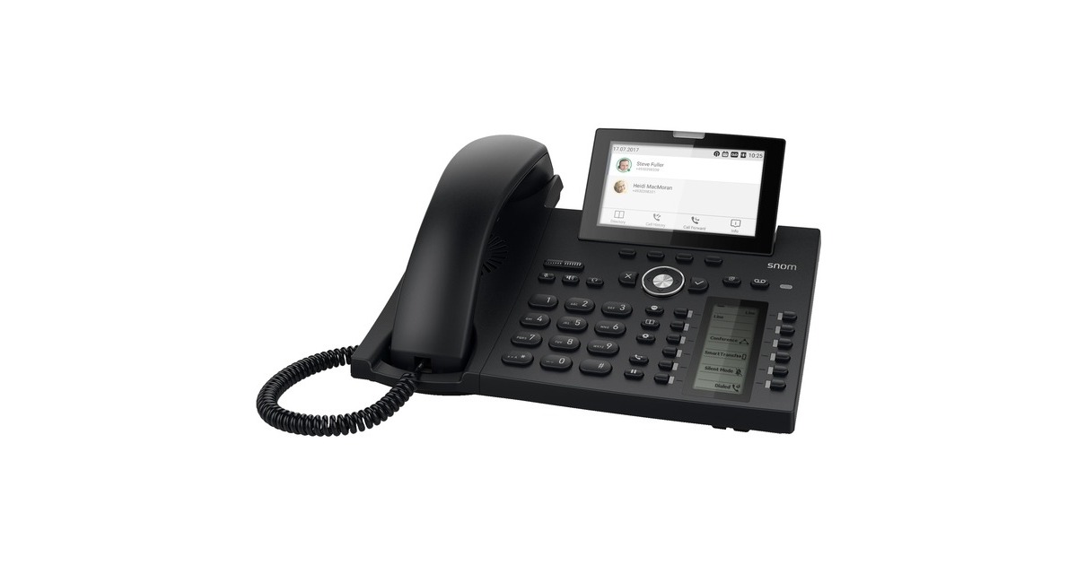 Das Snom D385 überzeugt mit seinen vielfältigen Funktionen und zeitlosem Design und fügt sich nahtlos in jeden Büroalltag ein. Der Snom SmartScreen lässt das mühselige Beschriften der Funktionstasten endgültig der Vergangenheit angehören. Auf dem großen 4,3“ Farbdisplay bietet das Telefon einfachen Zugriff auf alle wichtigen Informationen wie Anruflisten, Adressbücher und Funktionen. Alle Tasten am Snom SmartScreen verfügen über mehrfarbige LEDs, damit im hektischen Büroalltag nichts übersehen wird. Auf vier Seiten stehen dem Benutzer insgesamt 48 Einträge zur Verfügung. Dabei kann jede Taste individuell über die Telefonanlage oder auch direkt am Telefon mit Kurzwahlen, Umleitungen oder anderen Funktionen belegt werden. Natürlich profitiert man auch beim D385 von der HD-Audio Qualität. Dank des integrierten „Digital Signal Processor“ (DSP), der in Echtzeit die Qualität optimiert, hat jeder Gesprächspartner das Gefühl, man säße sich direkt gegenüber. Darüber hinaus verfügt das Telefon über einen integrierten Gigabit Ethernet-Switch mit „Power over Ethernet“ (PoE) Funktionalität sowie einen USB-Anschluss zum einfachen koppeln von Zubehör.Art.-Nr.: 1867372